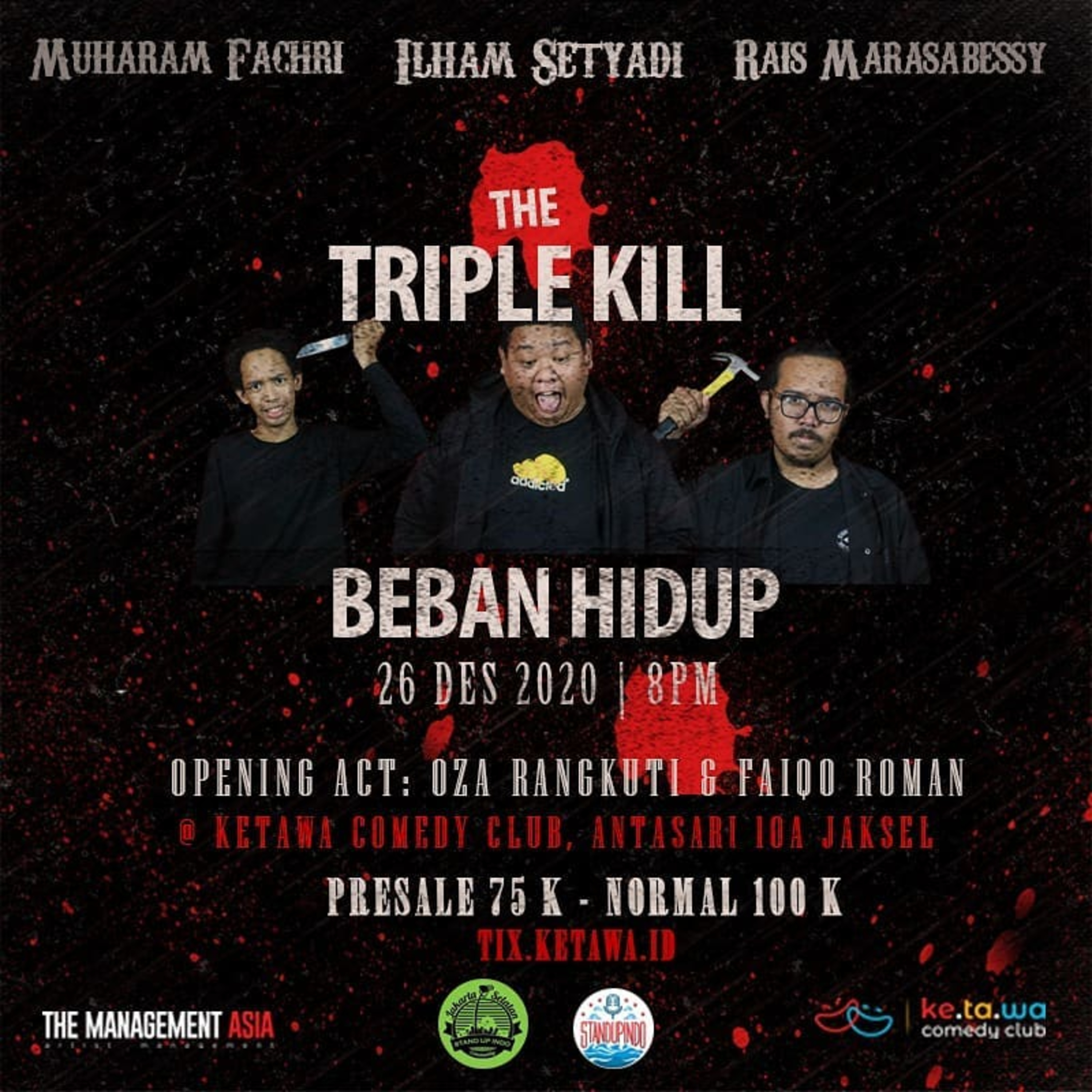 langsung ke tix.ketawa.id buat beli tiket 'Beban Hidup' dari @raissmarssy @muharamfachri dan @setyadi_ilham !! openernya gw dan @faiqoroman ! beli tiket 75k dapet bonus slot permanen di semua penayangan episode rahasia mulai sekarang sampe akhir season 4 dari @podcastkeselaje. Gas yuk!