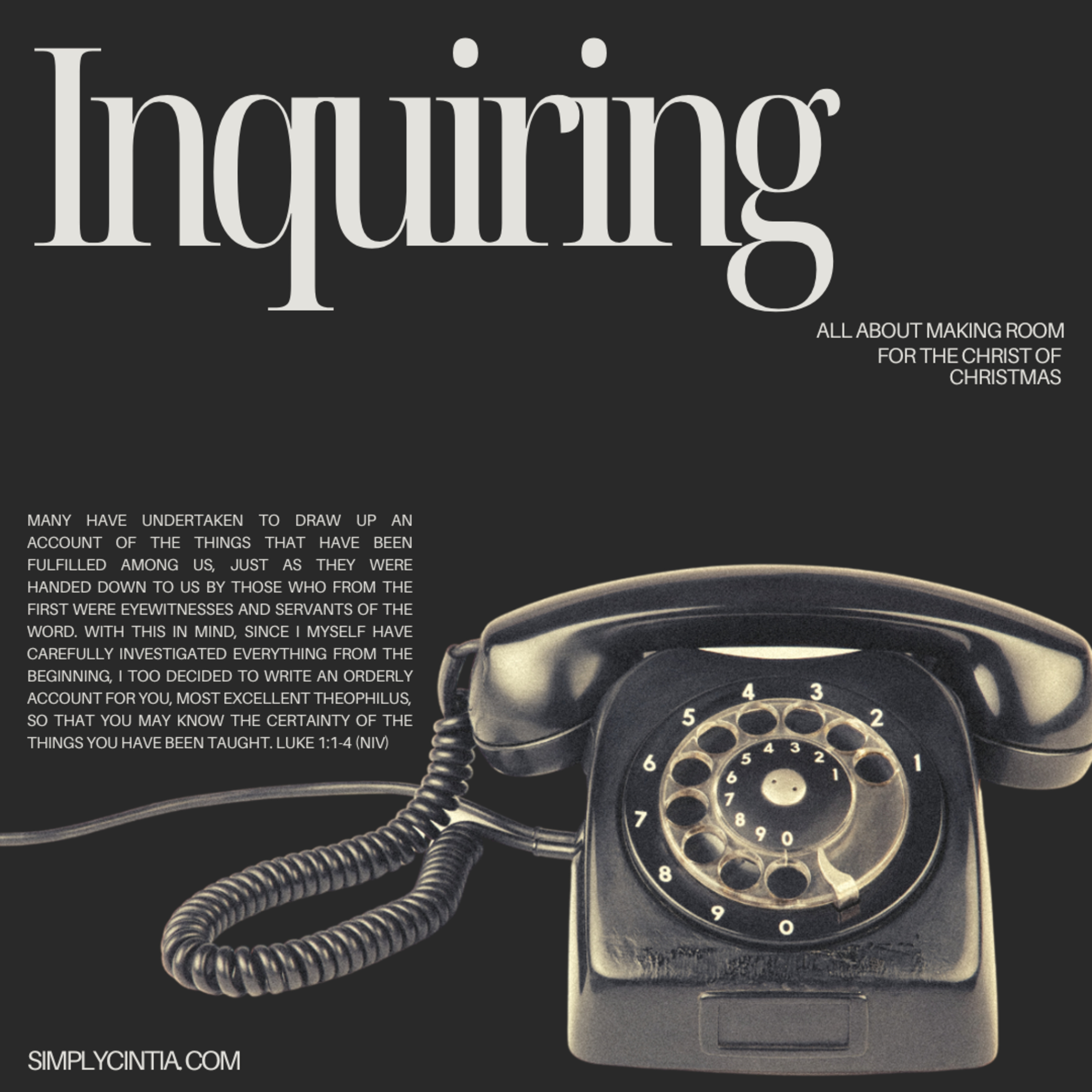 Christmas will be here before we know it. We can be true to ourselves as we follow God's gentle leadership in every area of our lives. This is Making Room for Jesus. Chapter 1: Inquiring.