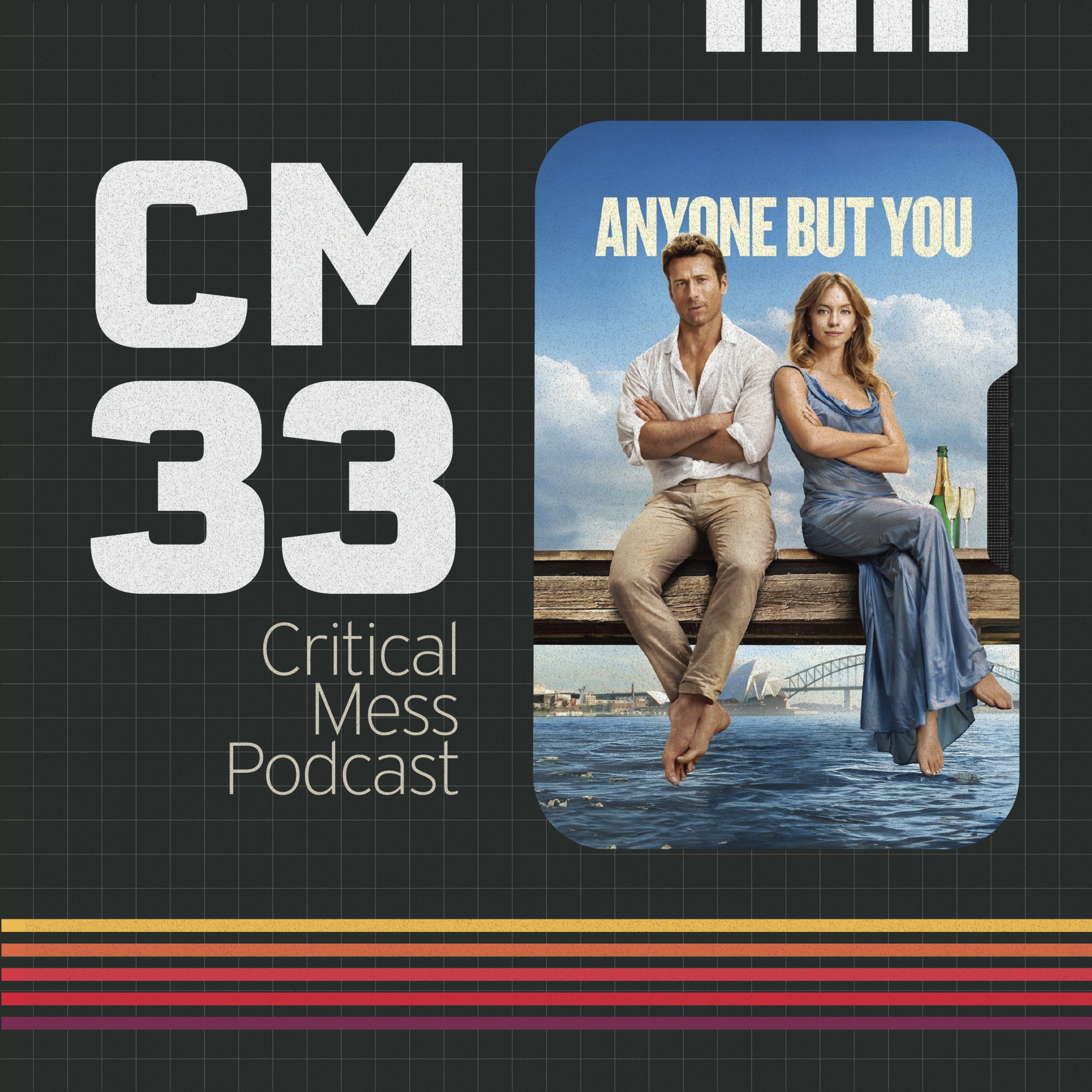 Welcome to Critical Mess, episode 33. Tonight, Nick, Gris, and Brian are talking 2023’s Anyone But You, starring Sydney Sweeny, Glen Powell, Charlee Fraser, Darren Barnet, Alexandra Shipp, Dermot Mulroney, and more. It was directed by Will Gluck.