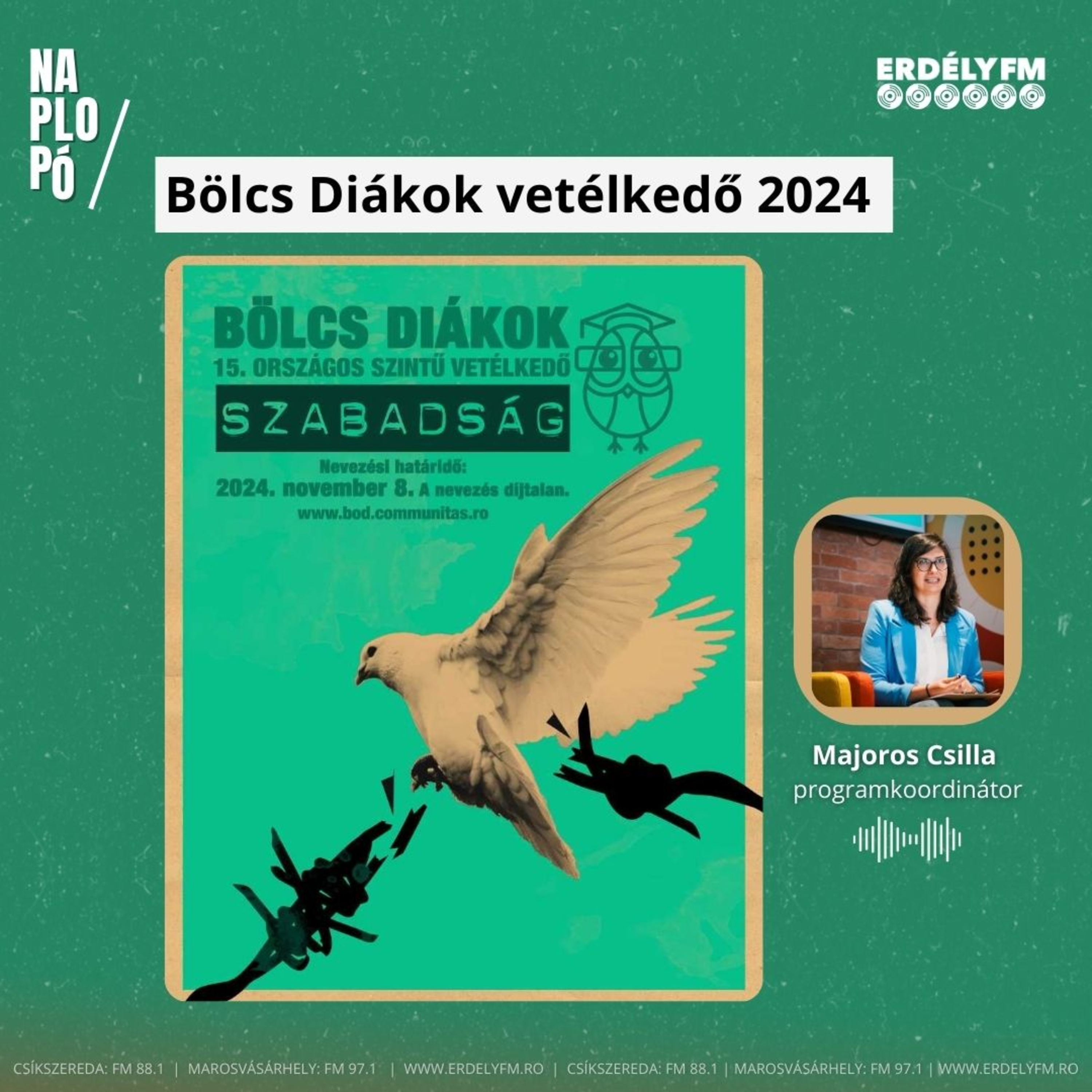A részletekről telefonos vendégünket, Majoros Csillát a vetélkedő programkoordinátorát, kérdeztük itt a Naplopóban.