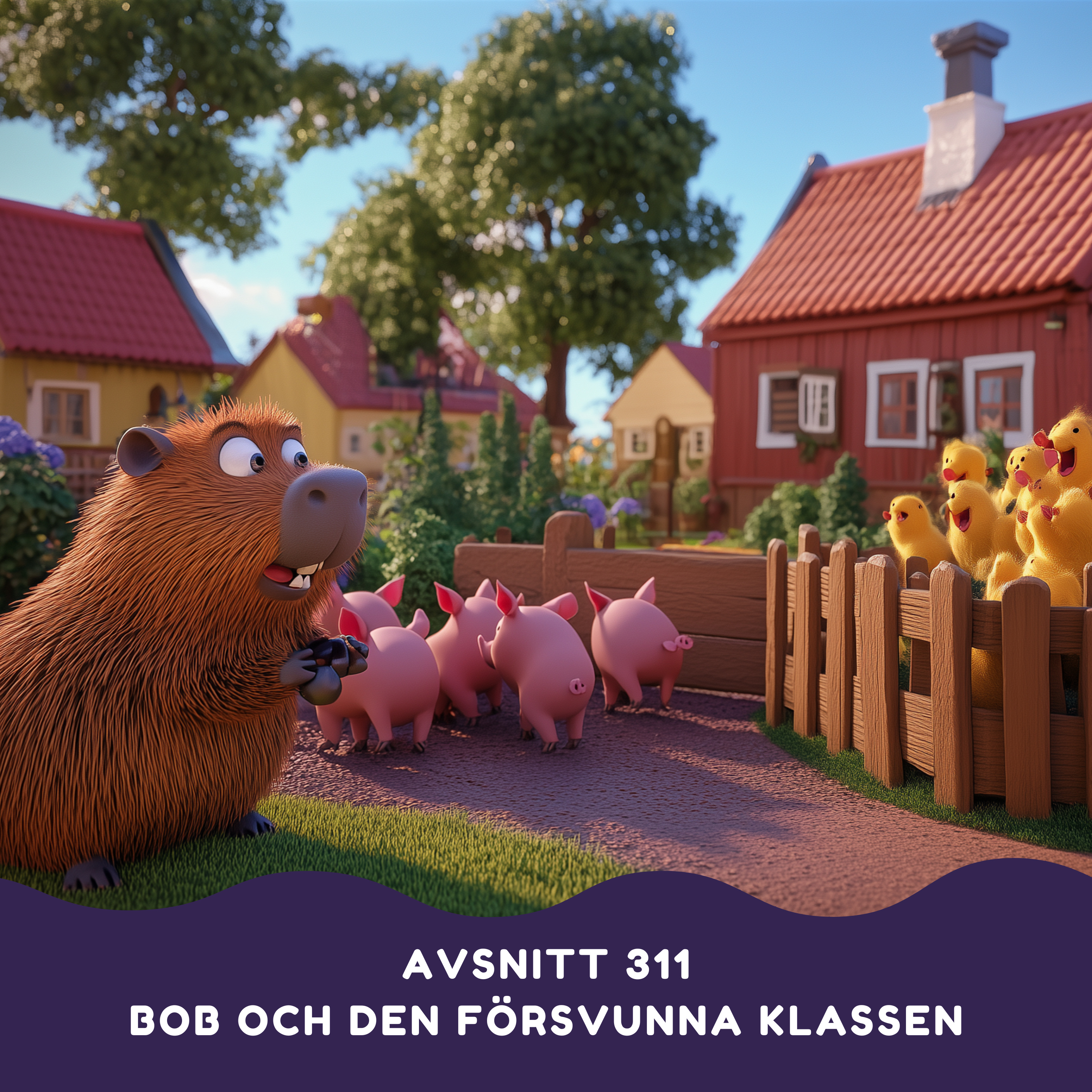 Följ med den nyfikna kapybaran Bob på ett spännande äventyr när han blir kvar bland grisarna under en klassresa till Skansen! När Bob måste leta efter sin försvunna klass upptäcker han hemliga platser och nya vänner han aldrig hade träffat annars. En varm och rolig berättelse som visar att även oväntade händelser kan leda till fantastiska upptäckter.