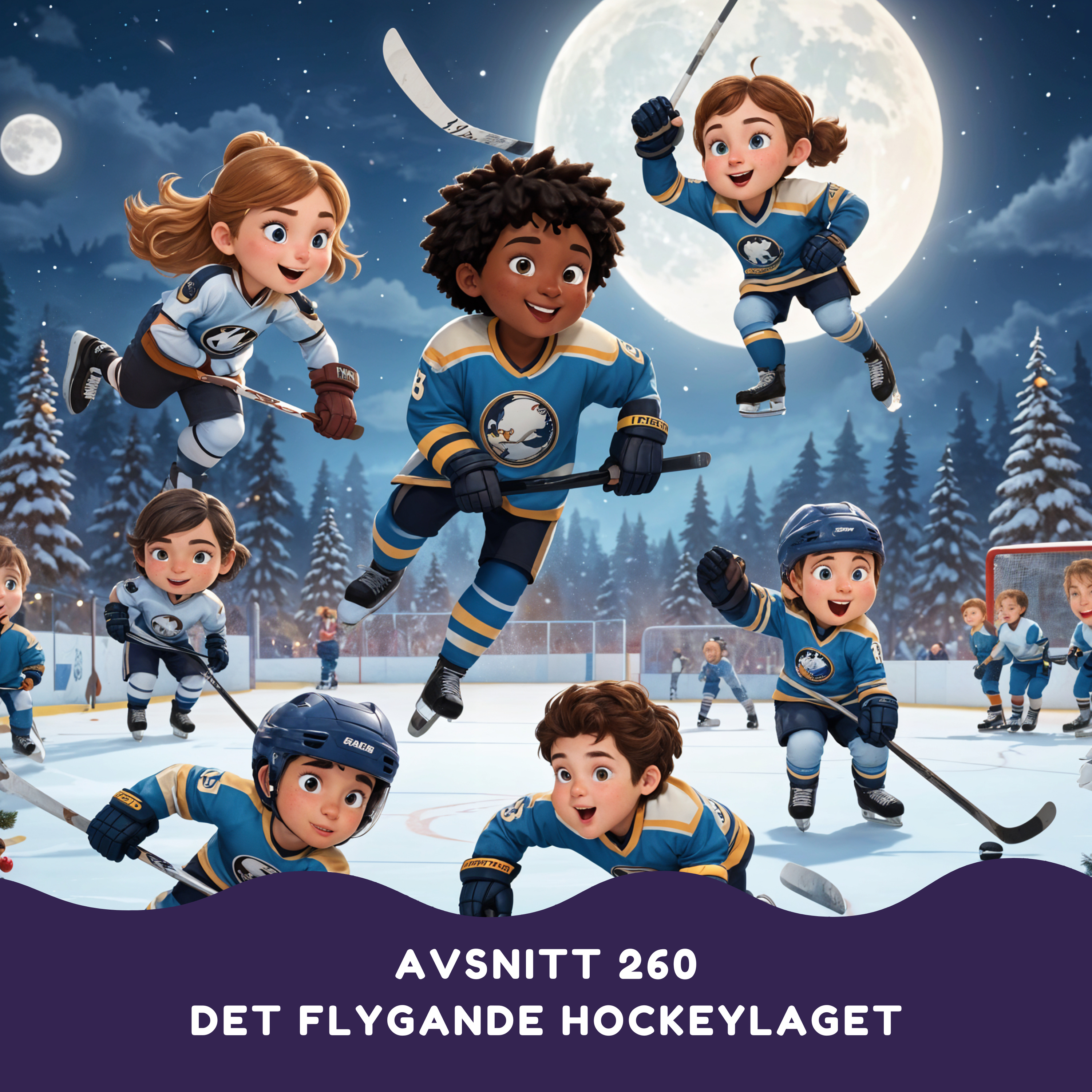 I dagens avsnitt får vi höra den spännande sagan "Det flygande hockeylaget", önskad av William, 6 år från Edmonton i Kanada.