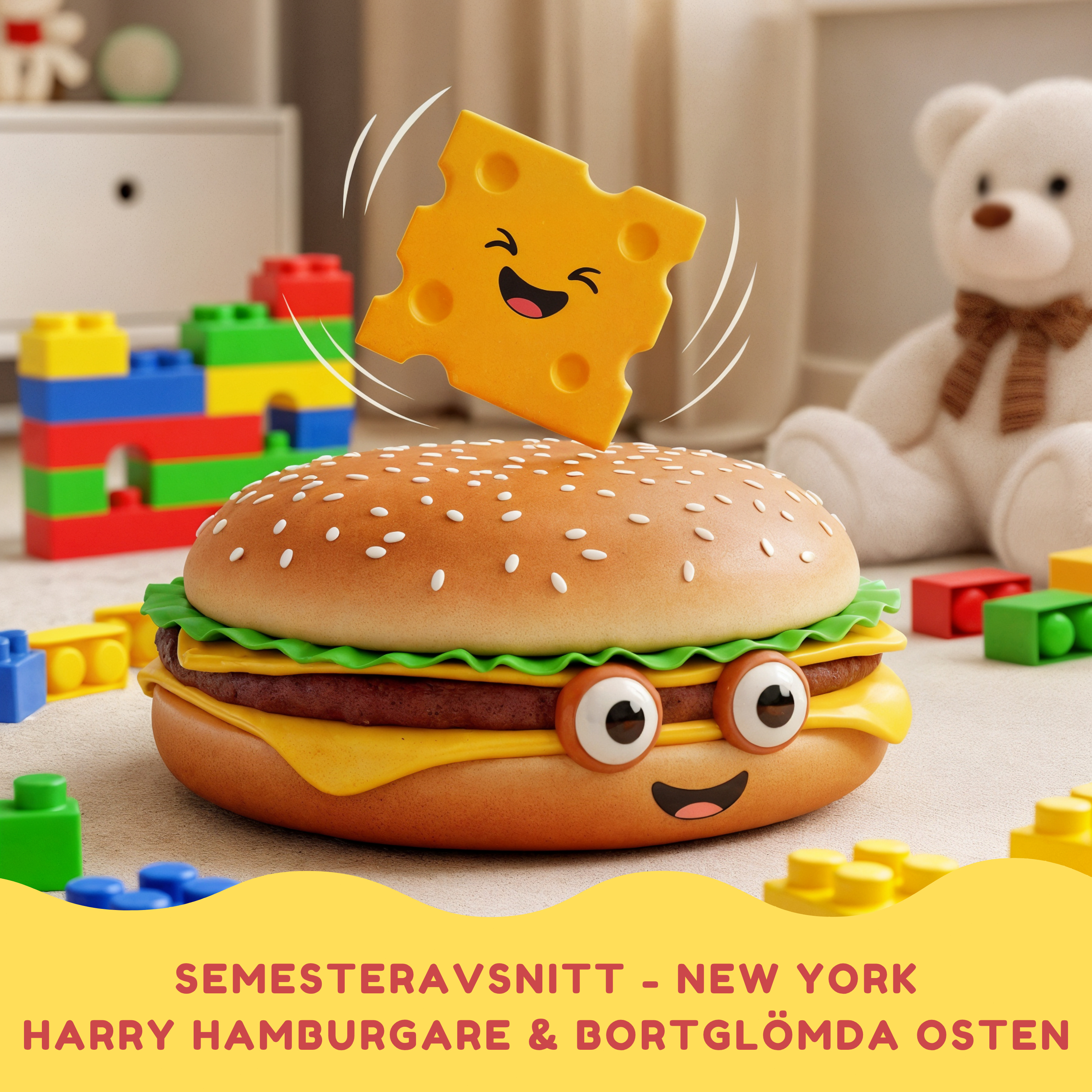 I kvällens saga får vi följa med Harry Hamburgare som upptäcker att hans ost har glömts bort! Men ostskivan Agnes ringer upp och tillsammans ger de sig ut på ett tokigt äventyr i staden. En rolig berättelse om vänskap som visar att man inte alltid behöver passa ihop för att bli bästa kompisar.