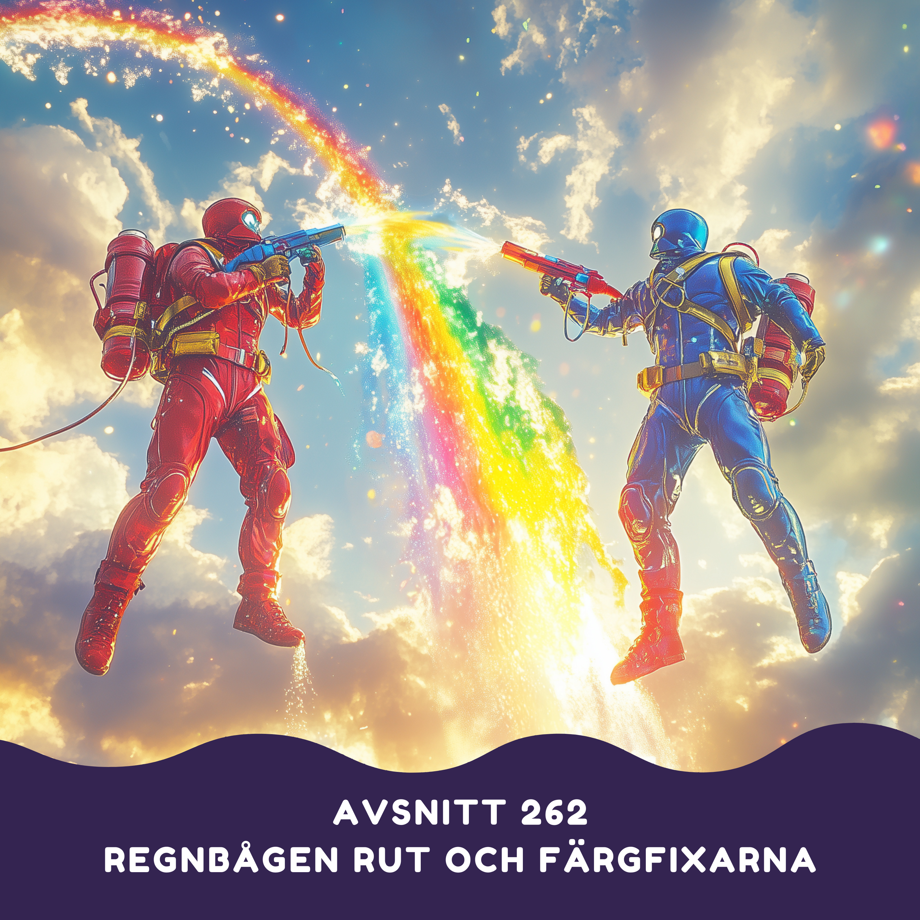 Följ med på ett magiskt äventyr där vi möter Regnbågen Rut, som har tappat alla sina färger! Men oroa dig inte, för här kommer superhjältarna Röda Blixten och Blå Blixten till undsättning. Tillsammans med Färgfixarna får vi uppleva en saga full av glädje, vänskap och färgexplosioner som får hela himlen att skimra. Lär dig tillsammans med Rut att det är okej att vara annorlunda och att med lite hjälp från vänner kan man upptäcka sin egen unika glans!