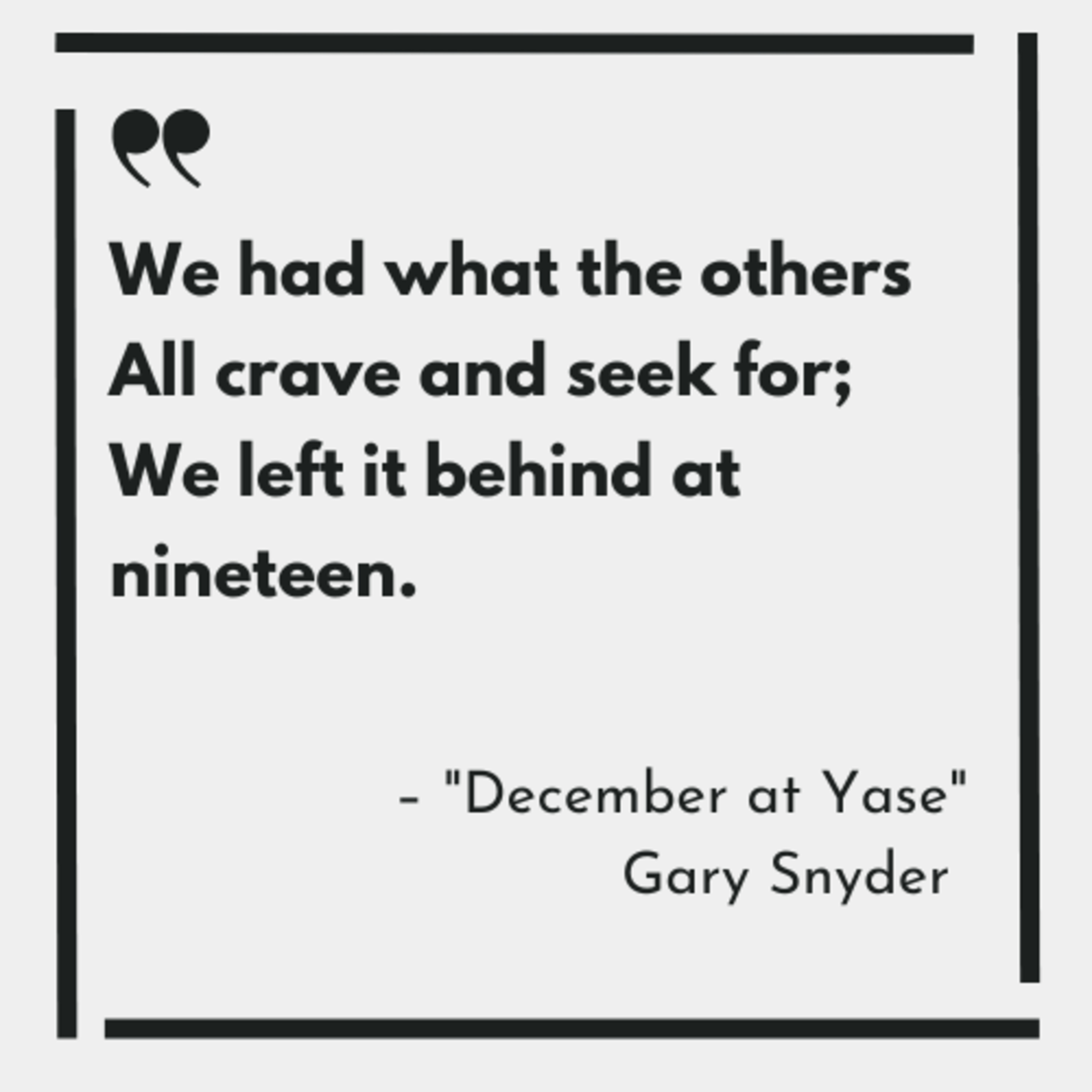 This is the second Gary Snyder poem to feature on this podcast. You can find "I Went Into the Maverick Bar" back in Episode 24.