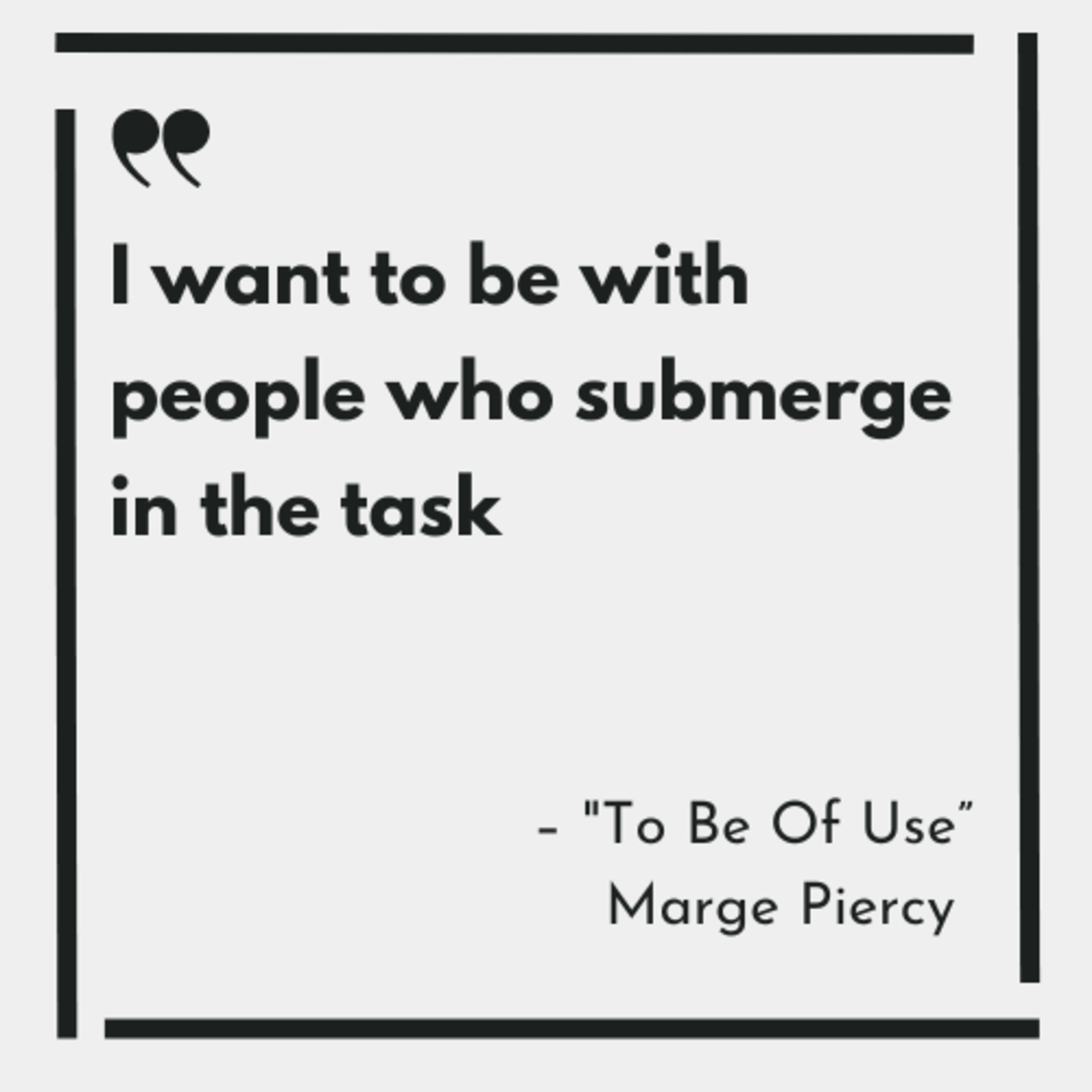 What I do know — and what Marge Piercy declares in this poem — is that to give us the warm feeling that we recognise, work must have some greater utility and value.