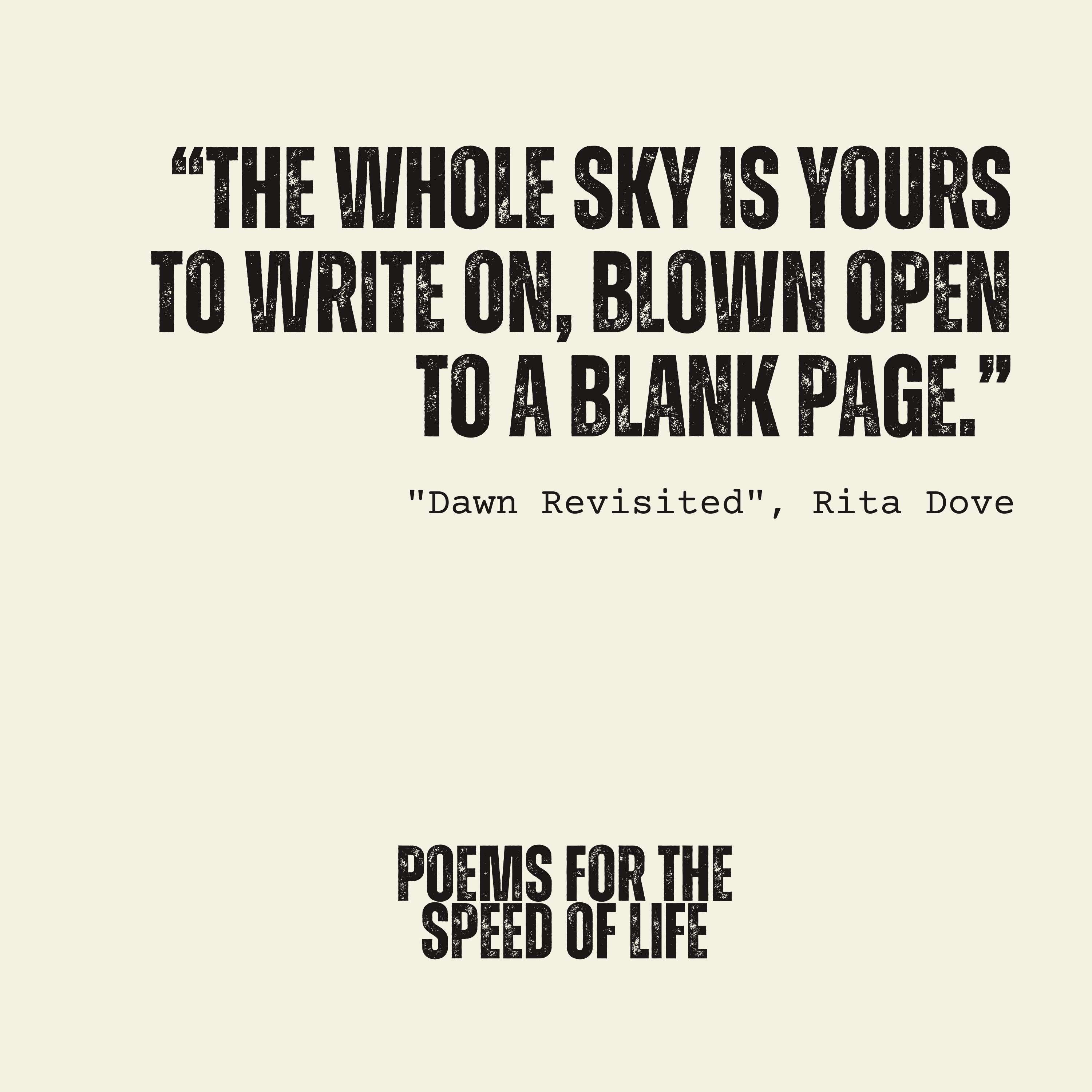 Today's poem is "Dawn Revisited" by Rita Dove, the former US Poet Laureate and Pulitzer Prize for Poetry winner.