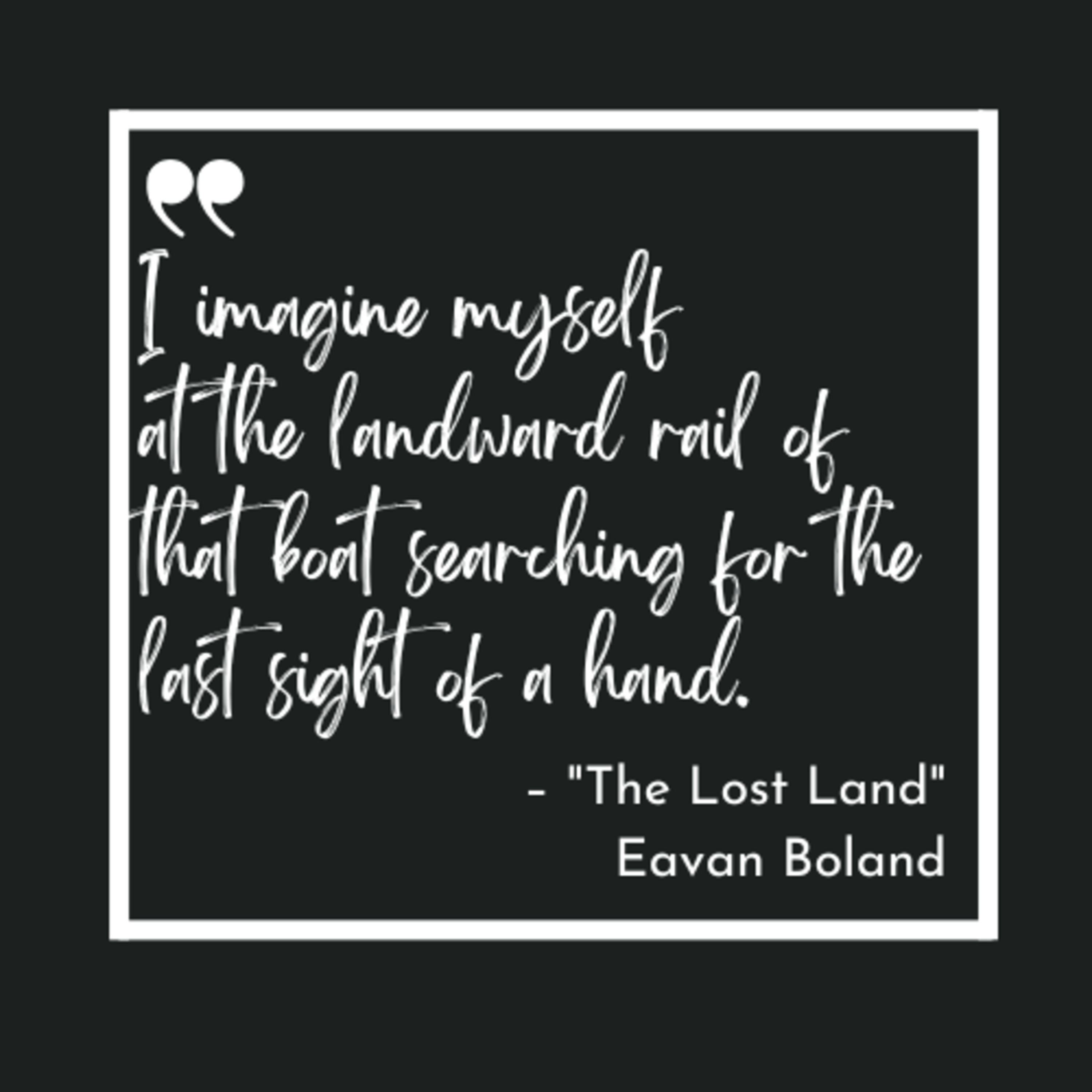 Today's poem is "The Lost Land" by Eavan Boland.
