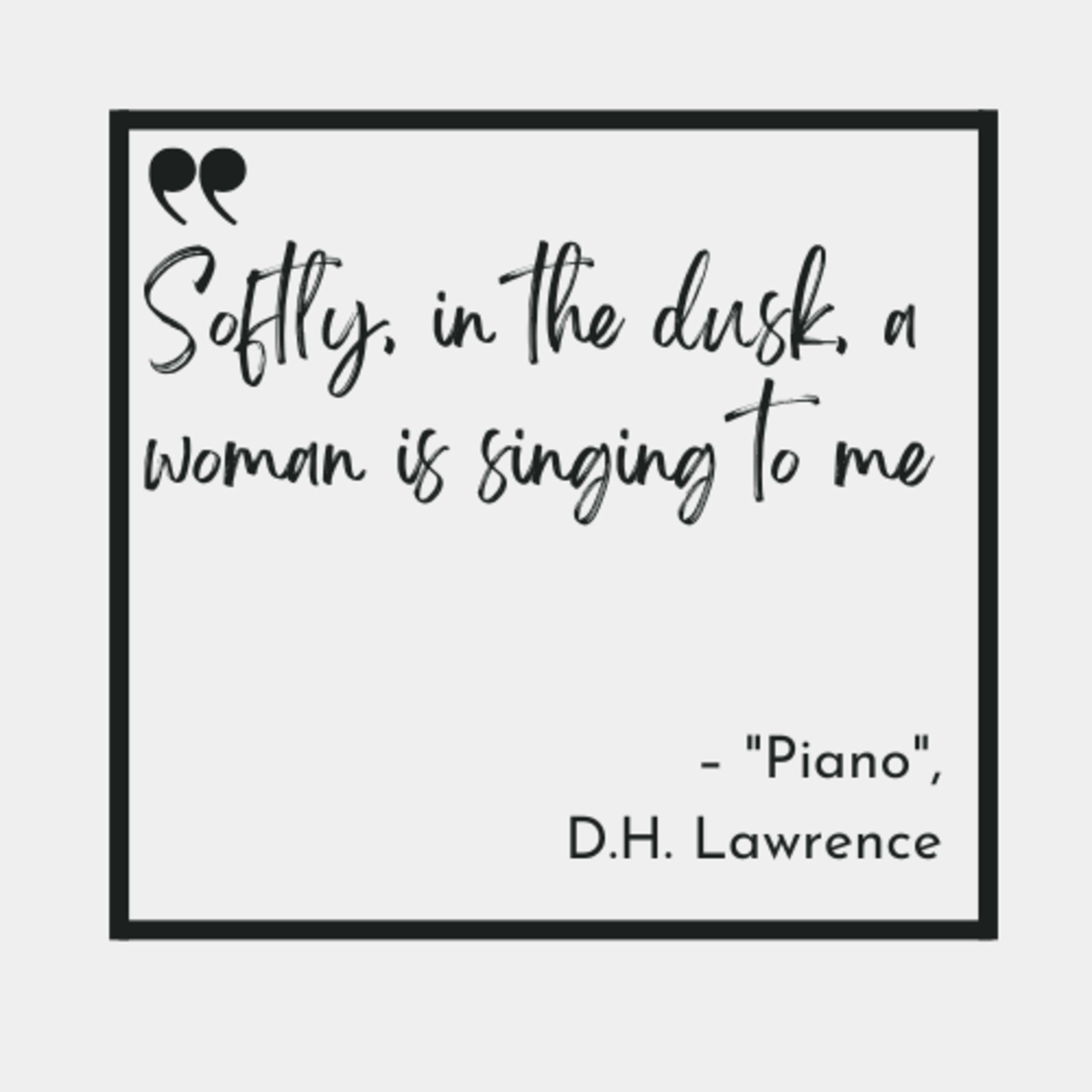 Today's poem is "Piano" by DH Lawrence. It's a poem about the power of remembrance, the weight of the past, and the burden of the present.