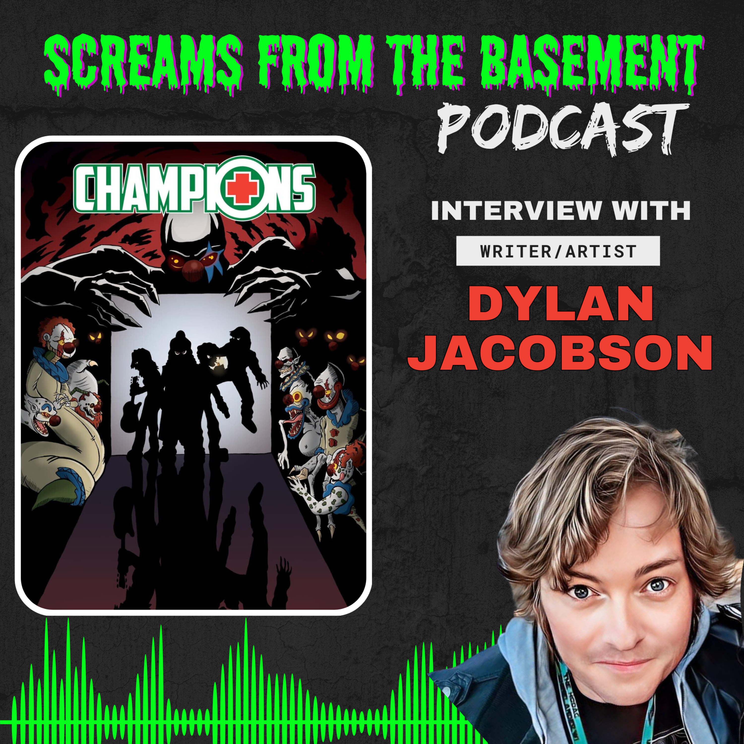Screams from the Basement is joined by writer and artist Dylan Jacobson to chat about his recently released graphic novel Champions: The Complete Series! Champions started it's single issue run in 2016, and follows a group of individuals with incredible abilities who take on child-eating clowns, mysterious men in suits, and a mutant pig! We discuss the musical inspirations behind the characters, how the story evolved over eight years, and what makes clowns utterly terrifying.