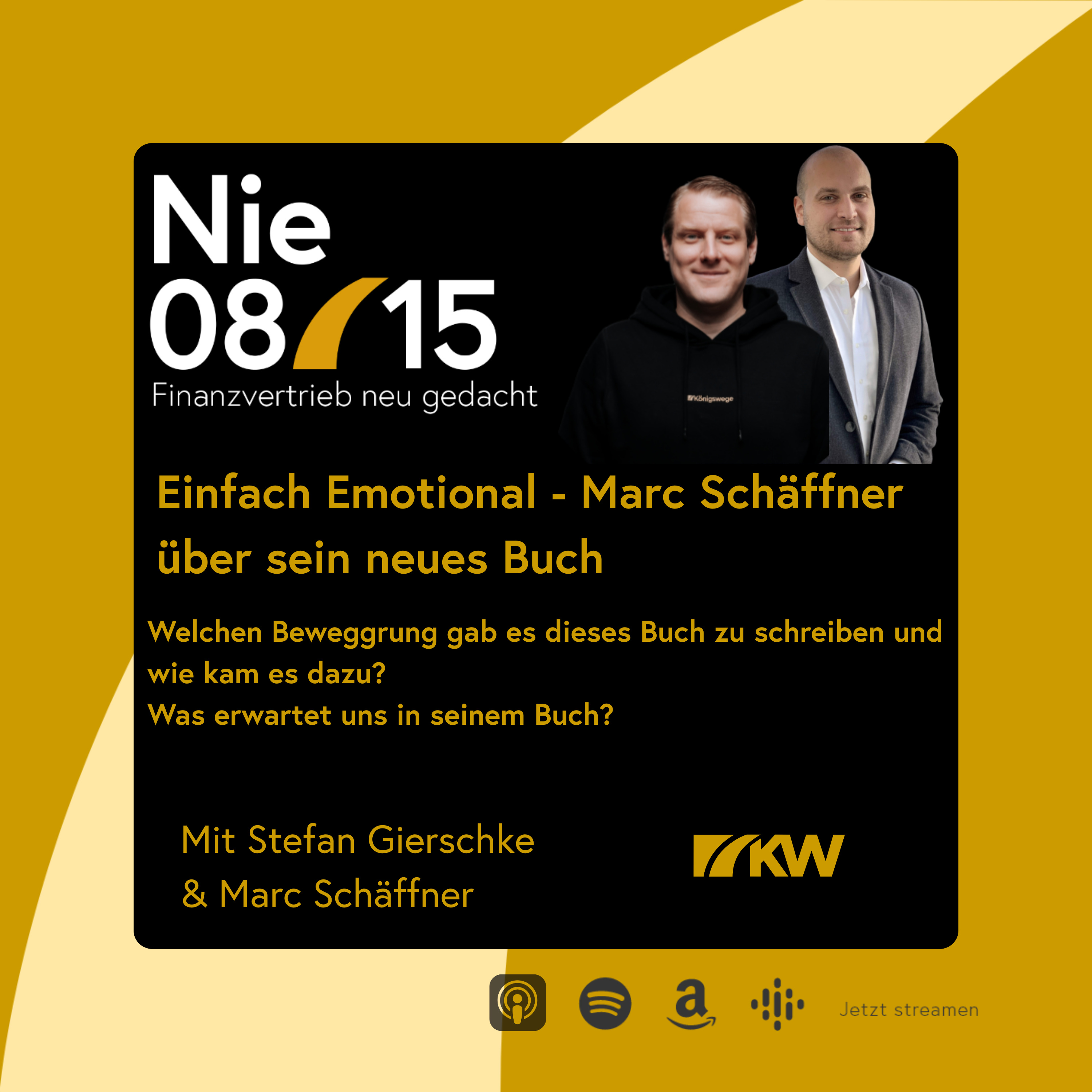 In dieser Folge spricht Host Stefan Gierschke mit Marc Schäffer, der nicht nur Autor des Buchs „einfach Emotional“, sondern auch Gesellschafter bei Königswege ist. Mit über 17 Jahren Berufserfahrung teilt Marc seine persönlichen Einblicke, berufliche sowie privaten Erlebnisse und die Beweggründe, die ihn zum Schreiben dieses Buches inspiriert haben.