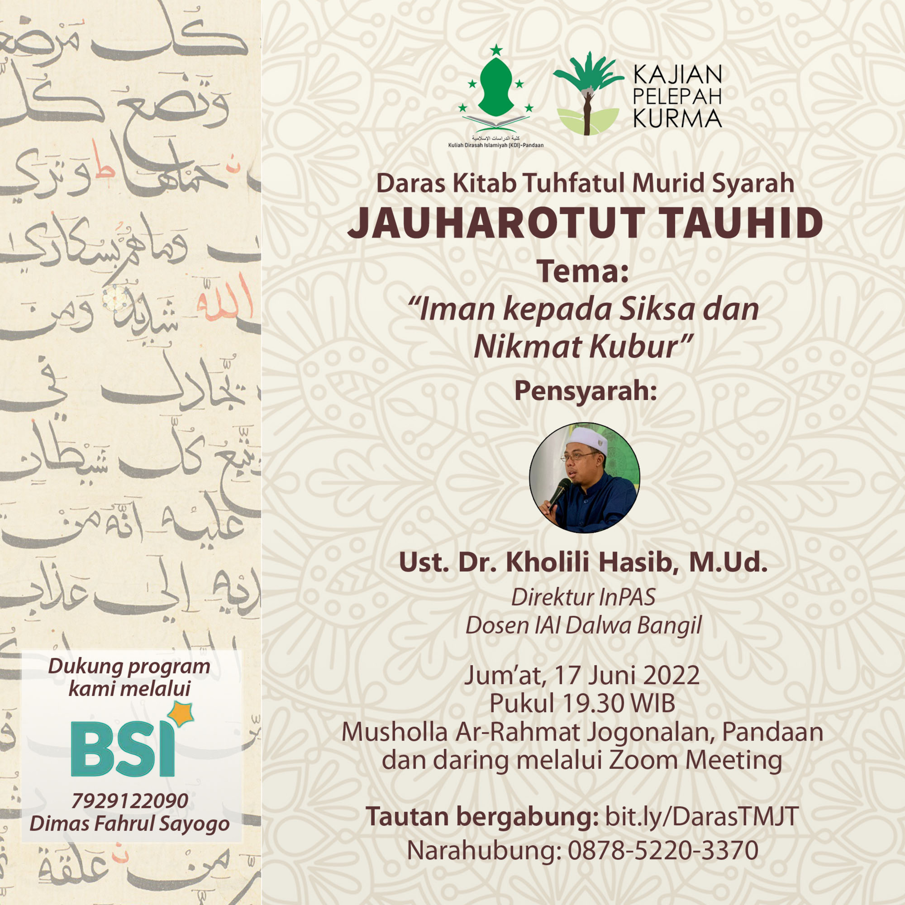 Pensyarah: Ust. Dr. Kholili Hasib M.Ud. (Direktur InPAS, Dosen IAI Dalwa Bangil)