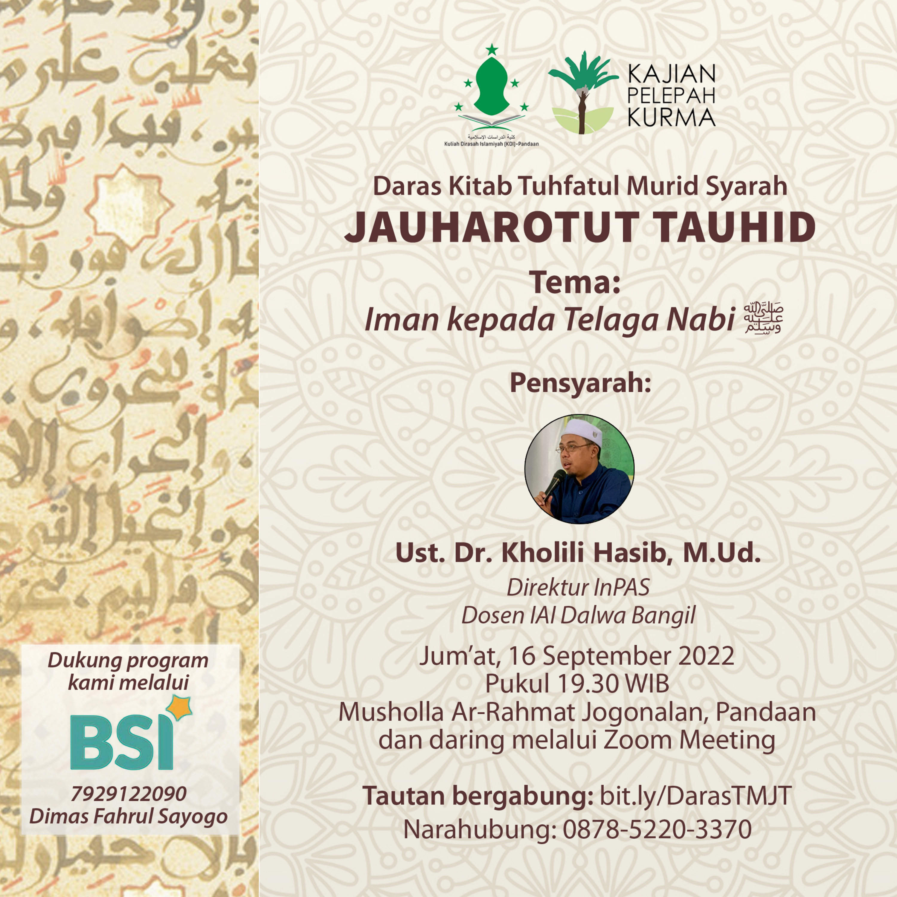 Pensyarah: Ust. Dr. Kholili Hasib M.Ud. (Direktur InPAS, Dosen IAI Dalwa Bangil)