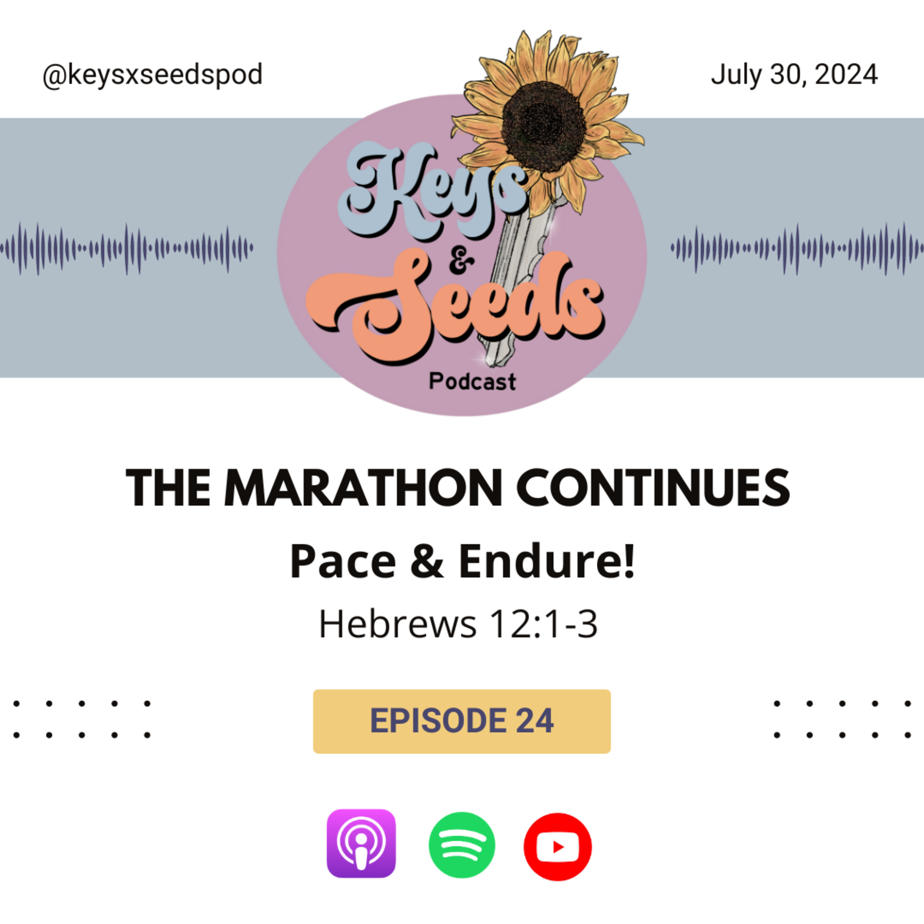 First things first, Rest In Peace to Nipsey Hussle! #TheMarathonContinues. In this episode, I emphasizes the importance of pacing oneself and being present in each season of life. I also provide encouragement to seek God for clarity & provision, & to learn from the lessons being taught in each season. Reminder: old keys won't open new doors.. & endurance is necessary for the journey.