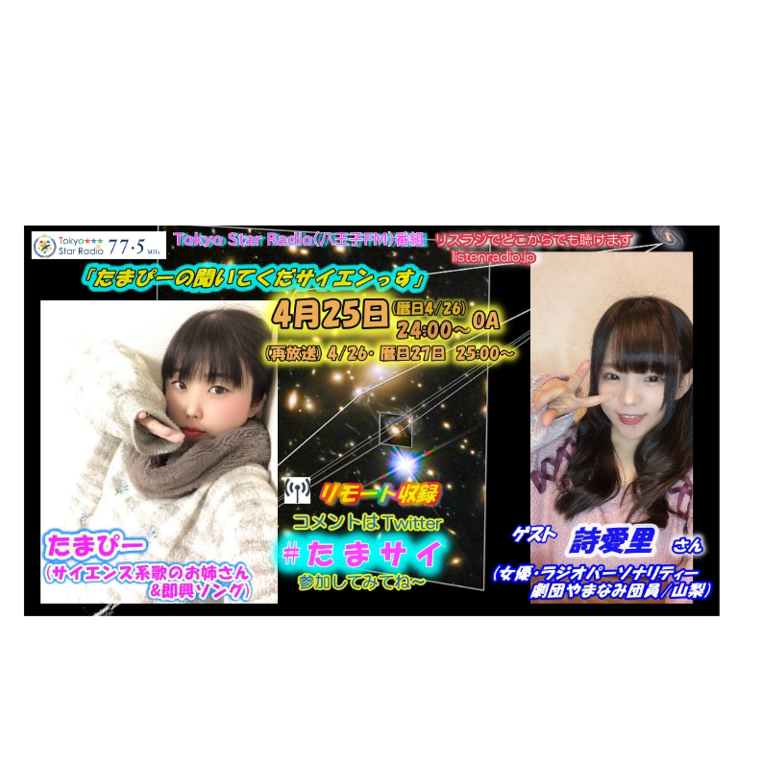 たまぴー(サイエンス系歌のお姉さん&即興ソング)&ゲスト・詩愛里(女優/ラジオパーソナリティー/劇団やまなみ団員)