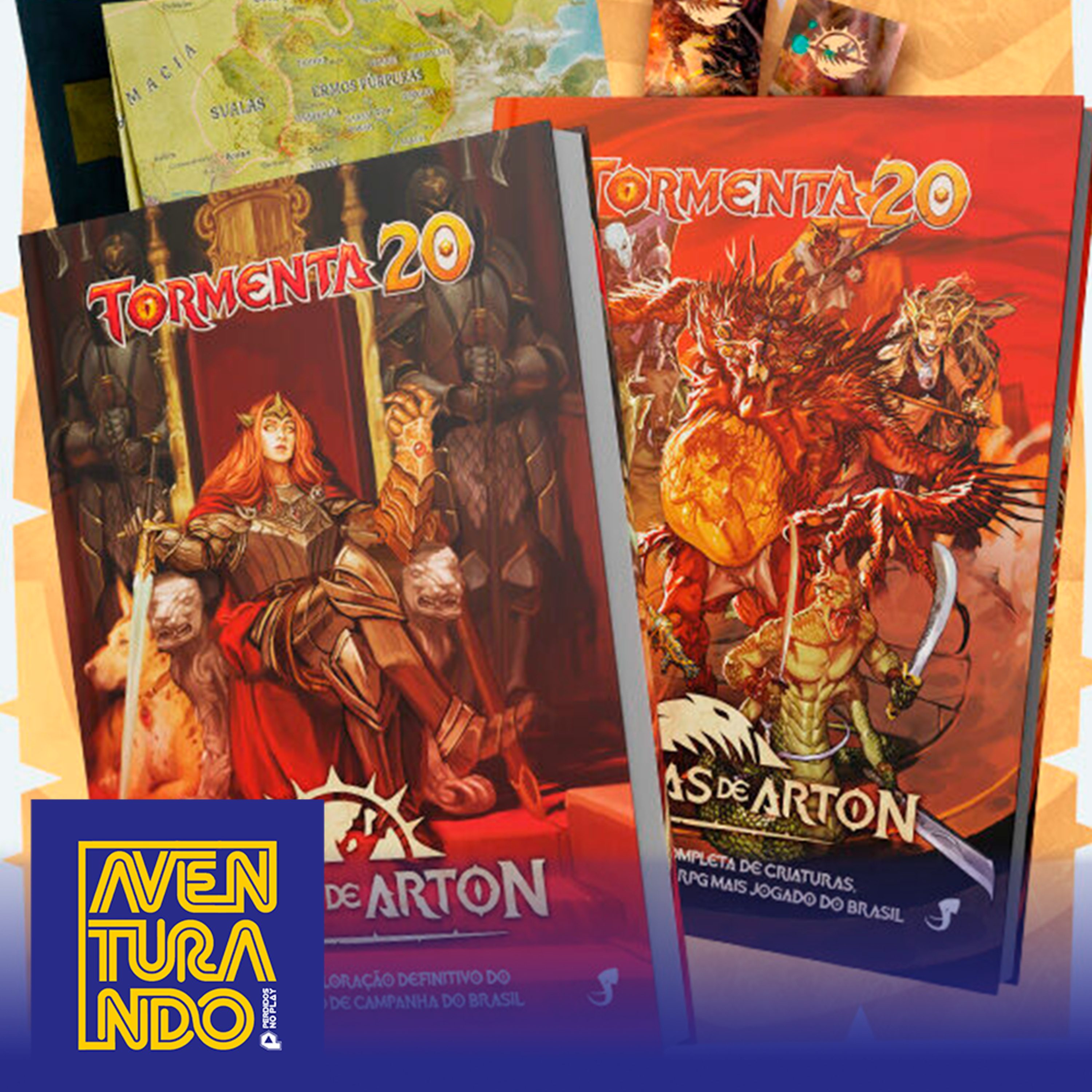 Atlas de Arton e Ameaças de Arton que estão em financiamento coletivo. Se você quer enriquecer sua mesa de Tormenta 20, dar mais opções pros jogadores e manter sua coleção atualizada, não deixe de visitar a página da campanha!