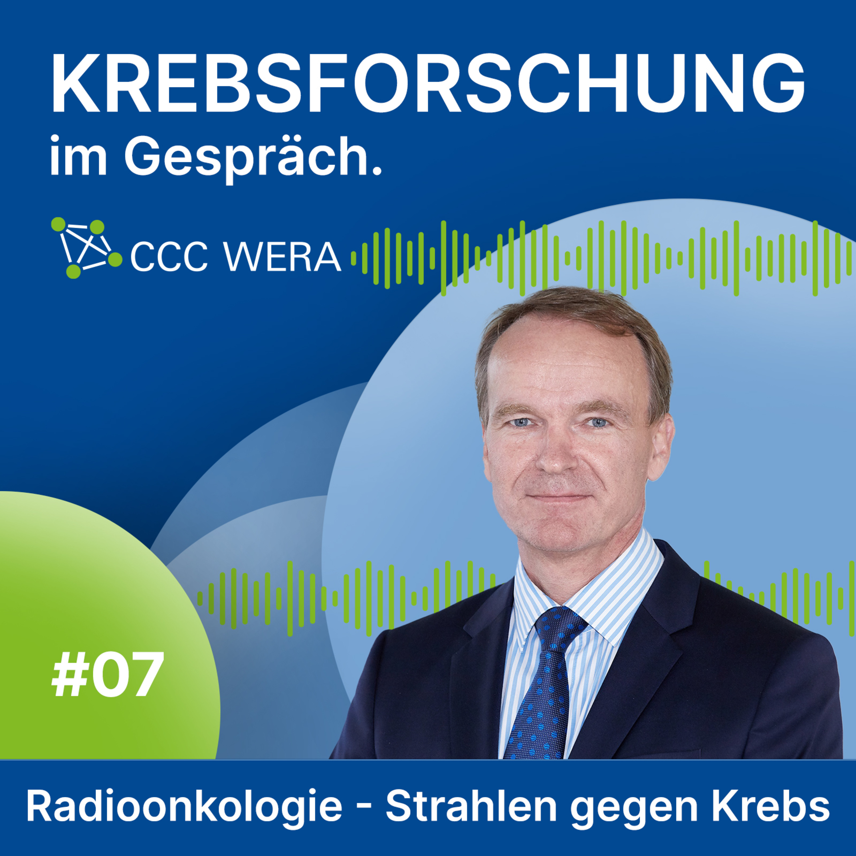 Die Bestrahlung ist ein wichtiger Baustein in der Behandlung von Menschen mit Krebs. In der heutigen Folge zum Thema „Strahlen gegen Krebs – Radioonkologische Forschung“ erfahren Sie, warum das so ist. Zudem wird im CCC WERA Podcast besprochen, wo der Ursprung der Strahlentherapie liegt, was in der aktuellen Forschung passiert und wie genau eine Bestrahlung vor und hinter den Kulissen abläuft. Entdecken Sie mit uns die aktuellen Entwicklungen, die derzeit die Bestrahlungstherapie und die Wissenschaft beeinflussen.