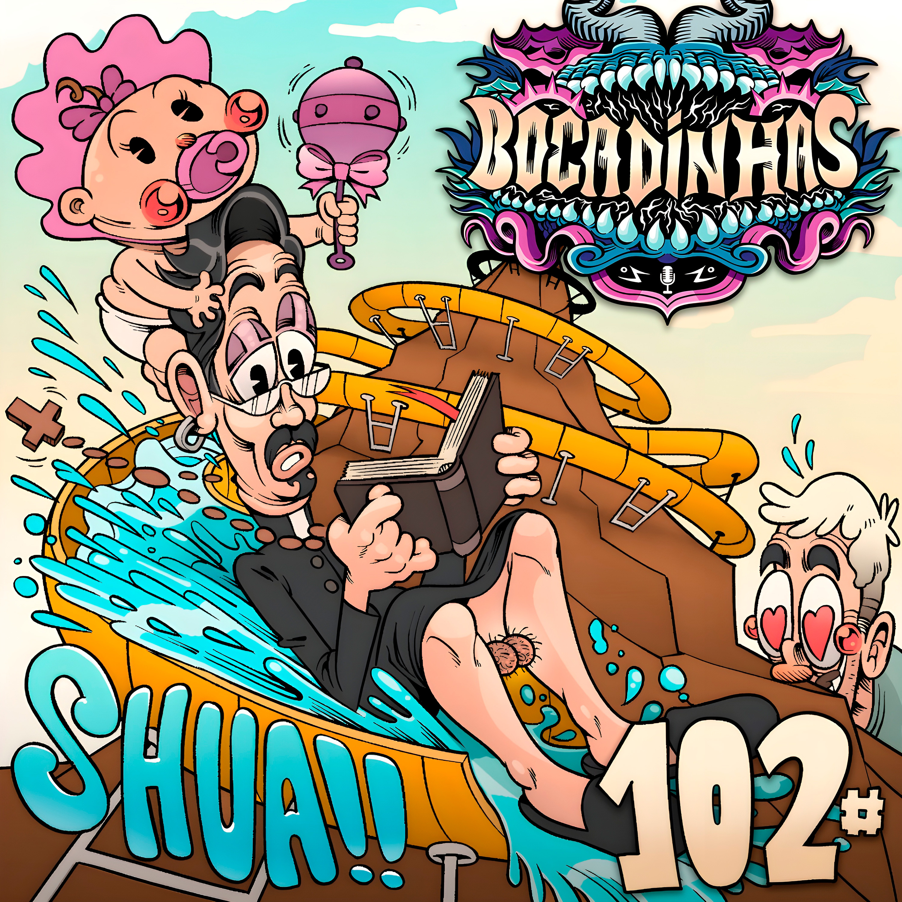 Hoje Lucas e Marcelo descobrem a diferença de um tobogã para um toboágua, debatem as vantagens do canibalismo sustentável e batizam crianças no Kilimanjaro.