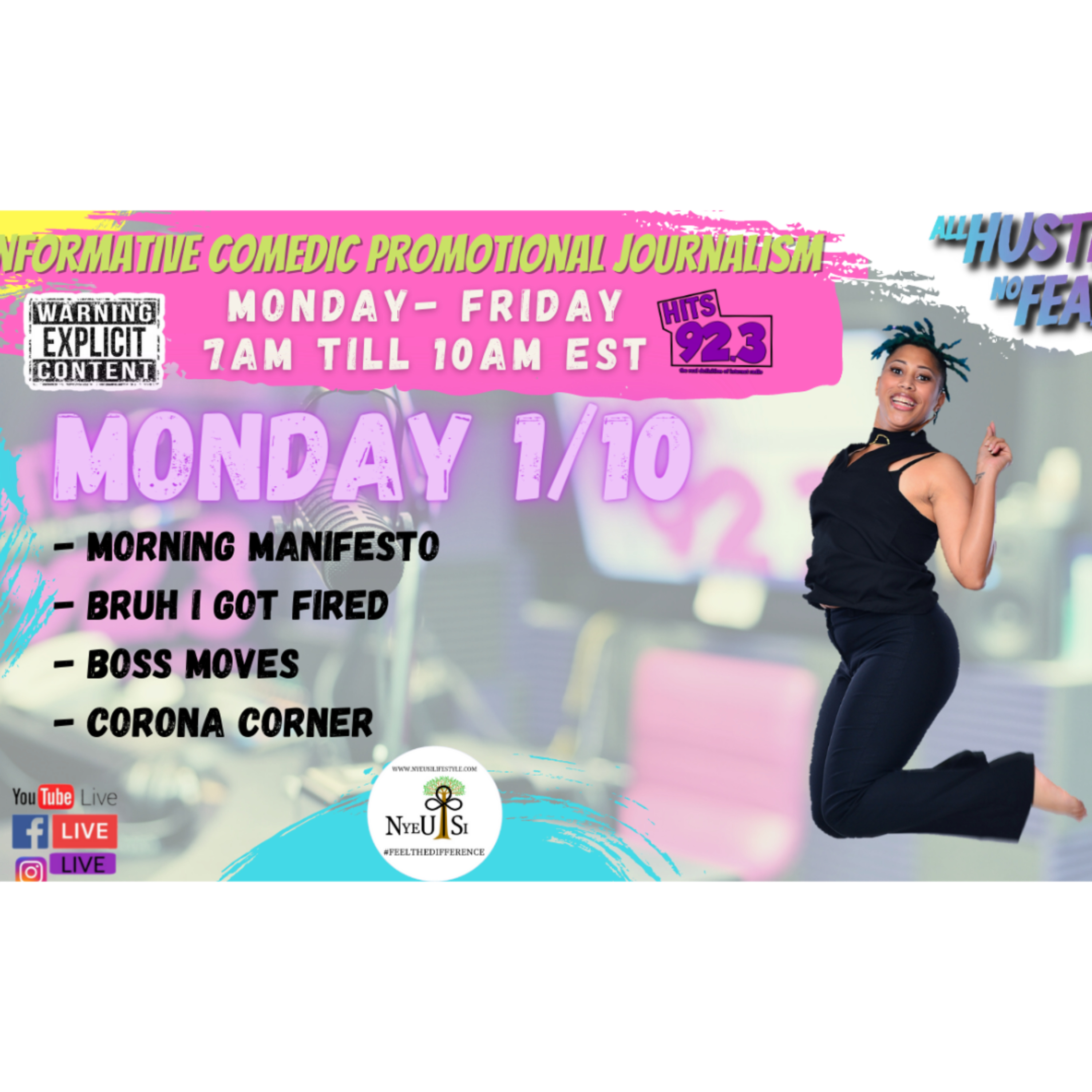 R.I.P to #coronacorner..#allhustlenofear is over it!! They just came out with the Flu-rona 😒, you know, when ur sick af but they need to add #rona to it 🤦🏽♀️. Even #chickfila says no more! As they decide to keep thier doors shut to Ms. Rona and all her friends. Tune in Monday-Friday from 7-10am EST with us live in the @hits92.3 app or on all social media platforms