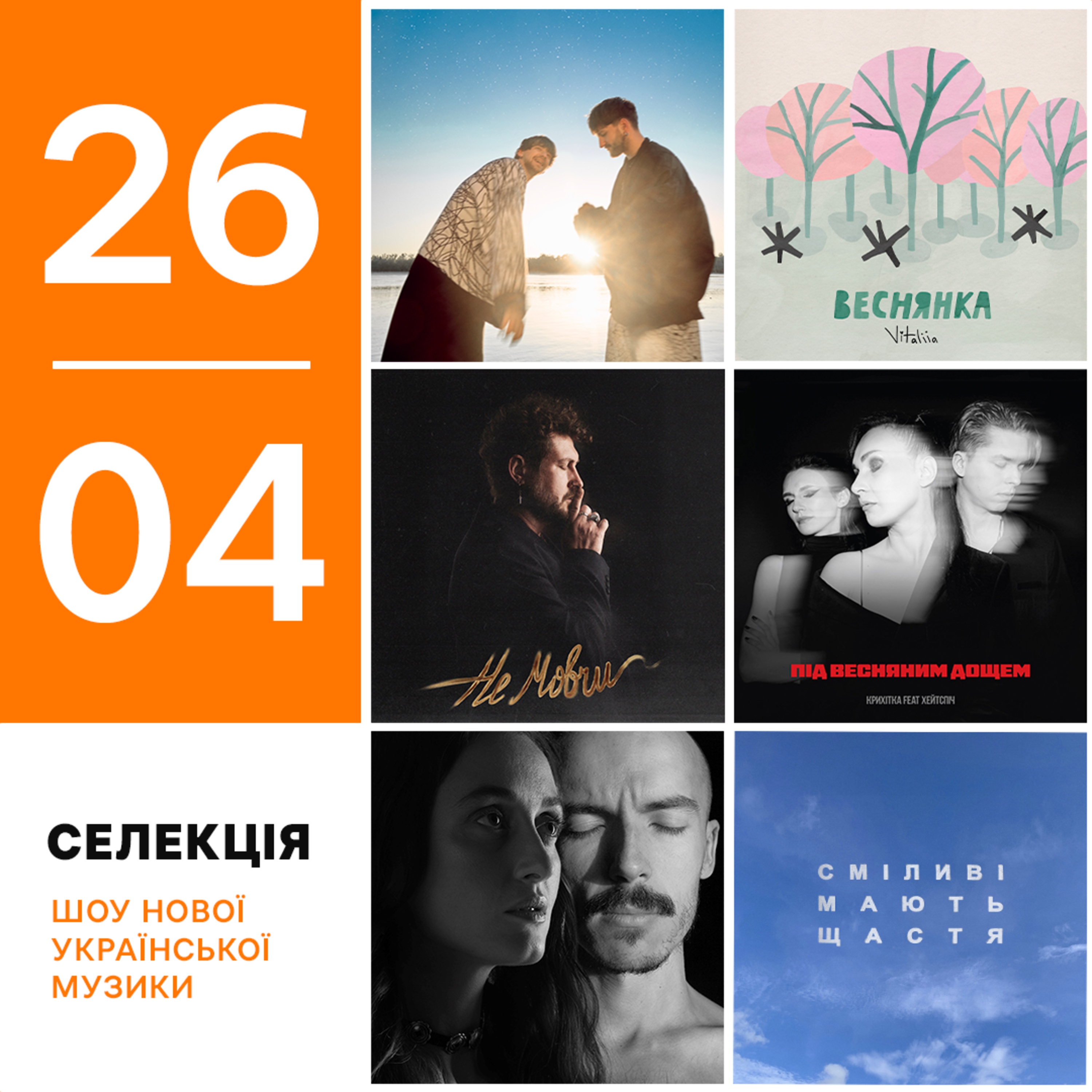 Саша Чемеров вперше видав пісню “Не мовчи”, яку вже виконує на концертах майже 15 років. Roxolana пропонує до нашої уваги мотивуючу новинку “Сміливі мають щастя”. Alina Pash та Zbaraski у травні видадуть спільний мініальбом. Той реліз вони анонсують синглом “Скло”.