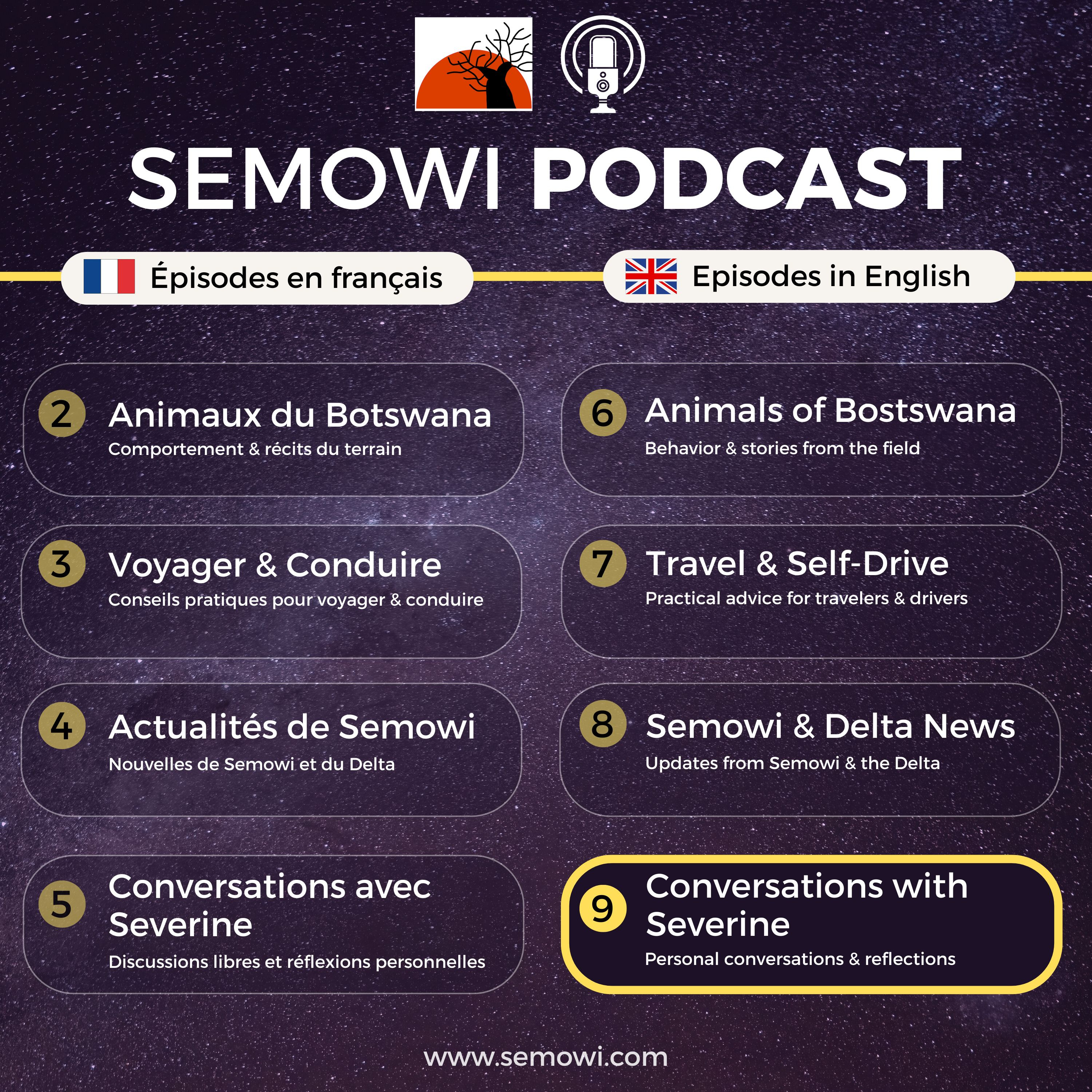 From now on, episodes are organised around major themes: