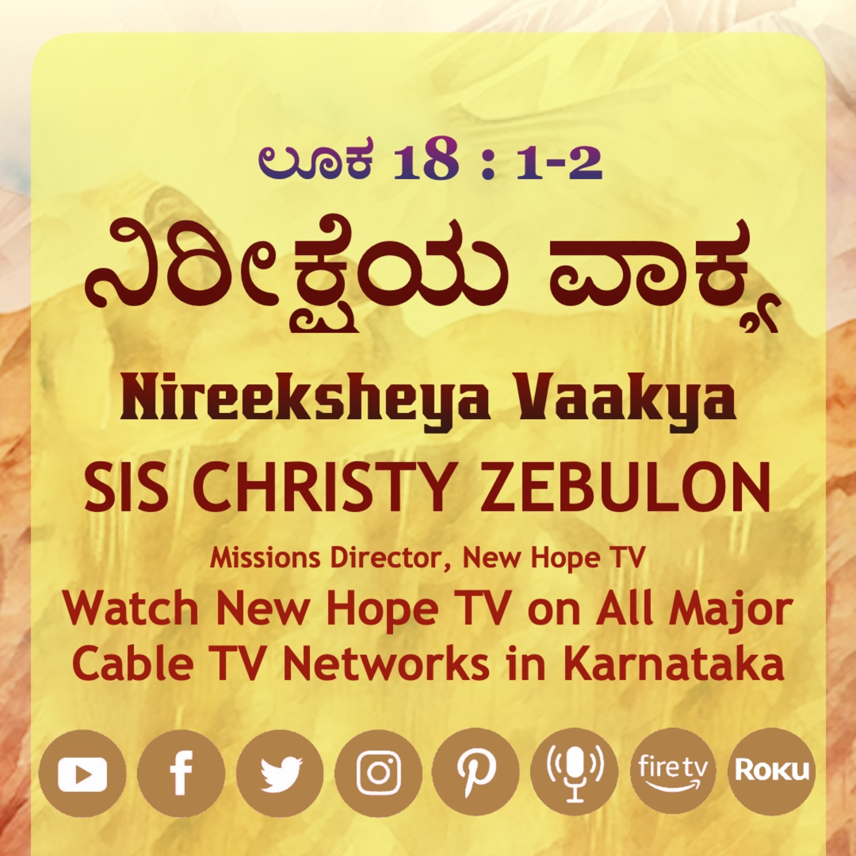 #dailykannadamotivation #kannadachristianvideos #wordfortoday #nireeksheyavaakya #wordofhope #christyzebulon #kannadadaily #kannadachristian #kannadamessages #newhopetv #kannadapodcast #Luke18v1 #10July2024 #promisewordforjuly