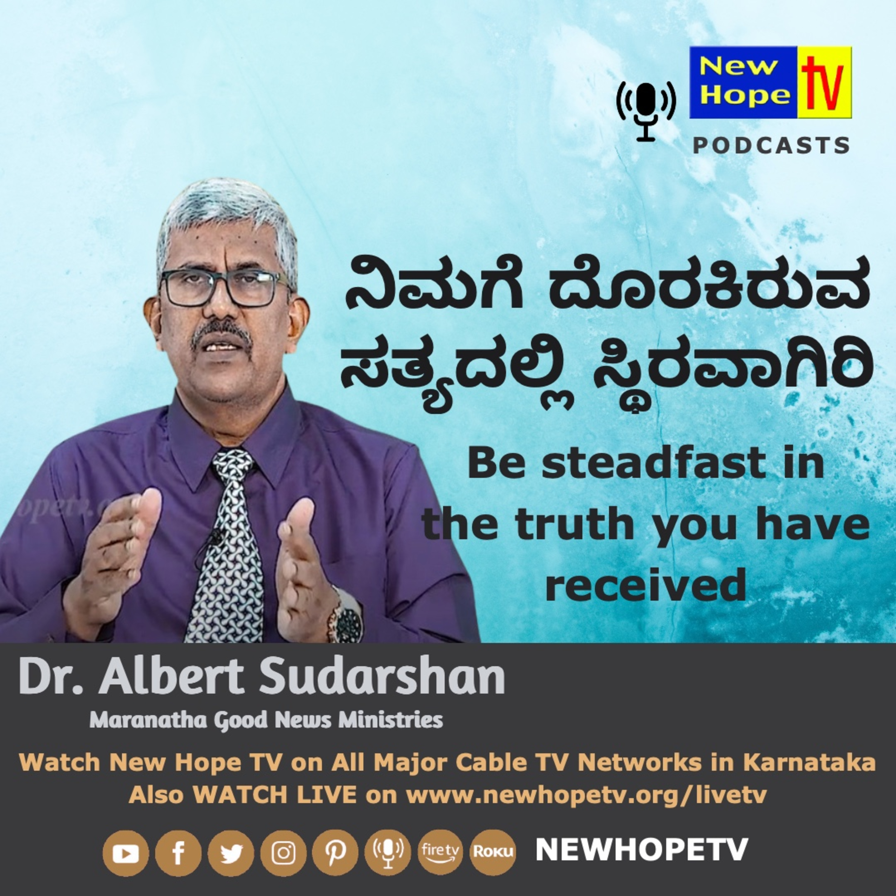 In this episode, Dr. Albert Sudarshan speaks on the Title "ನಿಮಗೆ ದೊರಕಿರುವ ಸತ್ಯದಲ್ಲಿ ಸ್ಥಿರವಾಗಿರಿ | Be steadfast in the truth you have received”