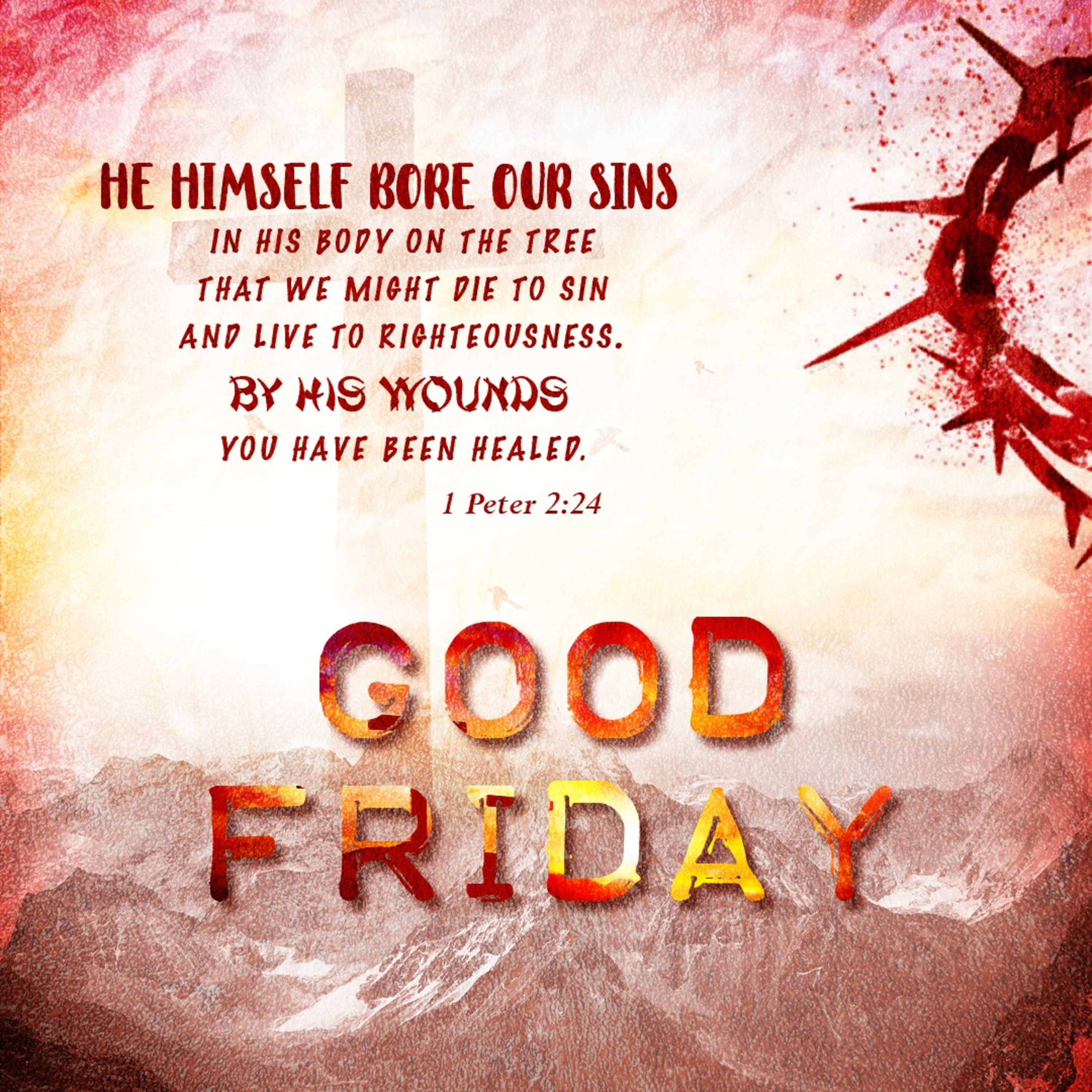 He Himself bore our sins in His body on the tree, that we might die to sin and live to righteousness. By His wounds you have been healed. 1 Peter 2:24