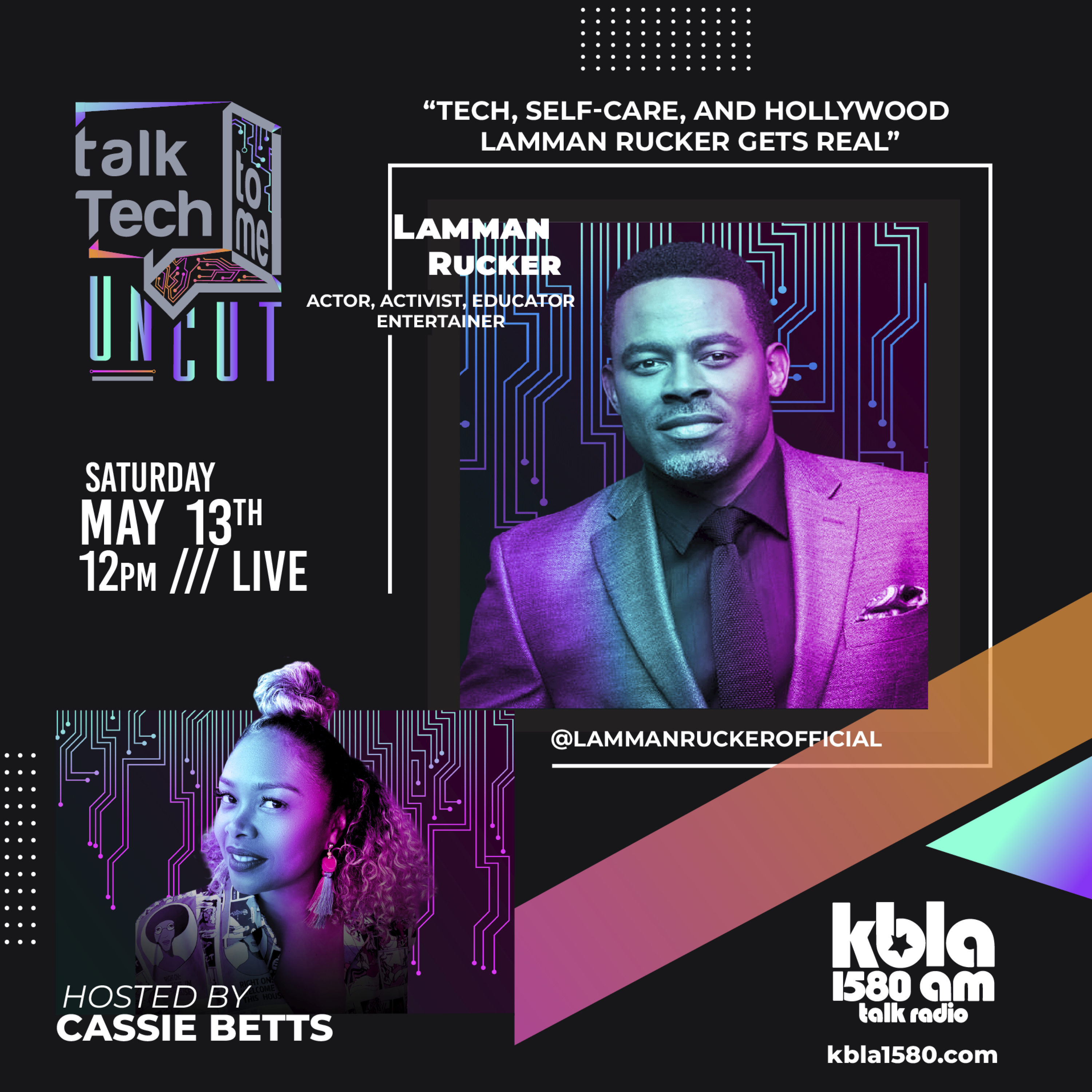 Tech, Self-care, and Hollywood: Lamman Rucker Gets Real with special guest "Lamman Rucker". “Talk Tech To Me-Uncut” hosted by Cassie Betts with Executive Producer MARTY Team.