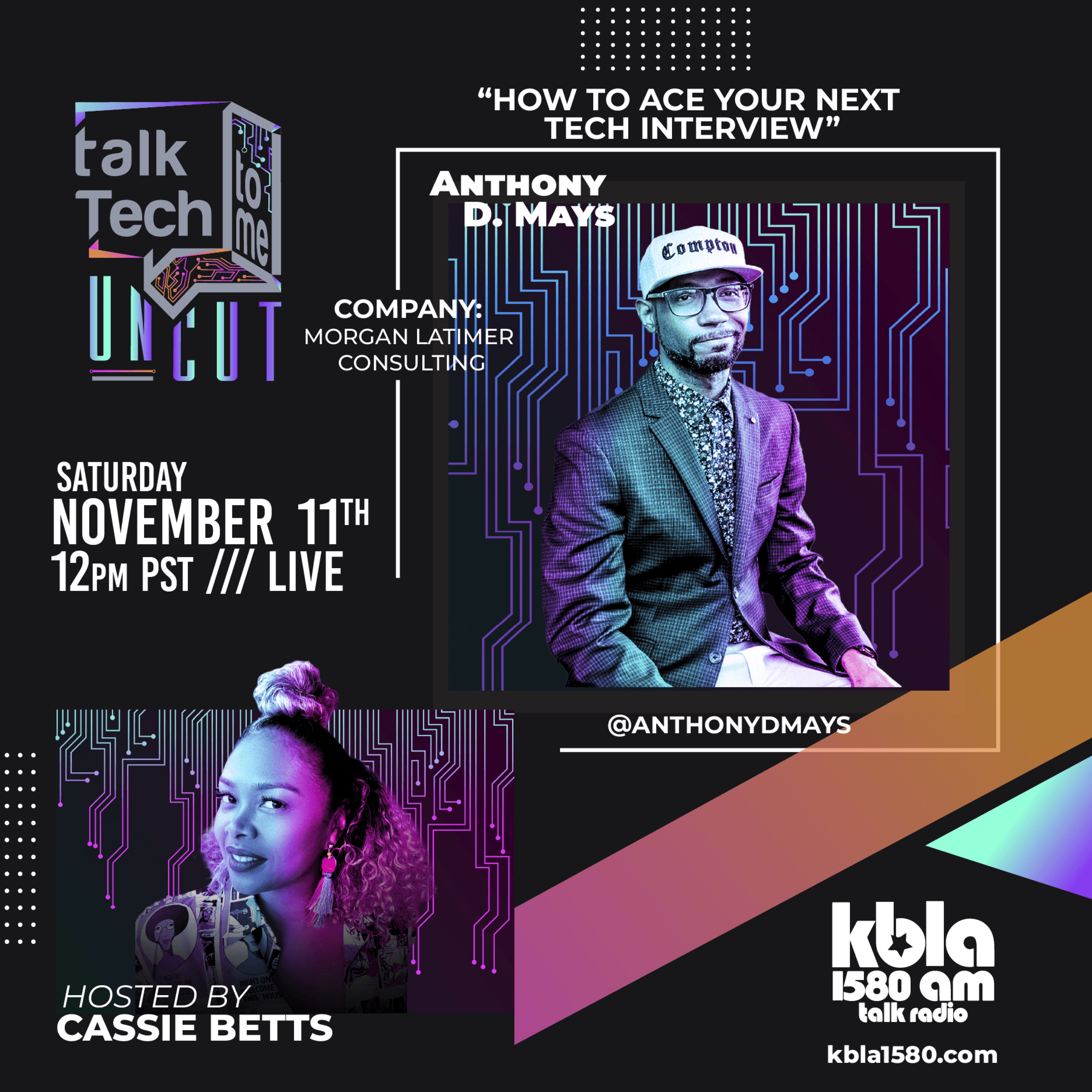 On today's episode How to Ace Your Next Tech Interview with special guest "Anthony D. Mays". “Talk Tech To Me-Uncut” hosted by Cassie Betts with Executive Producer Eman Barkley.