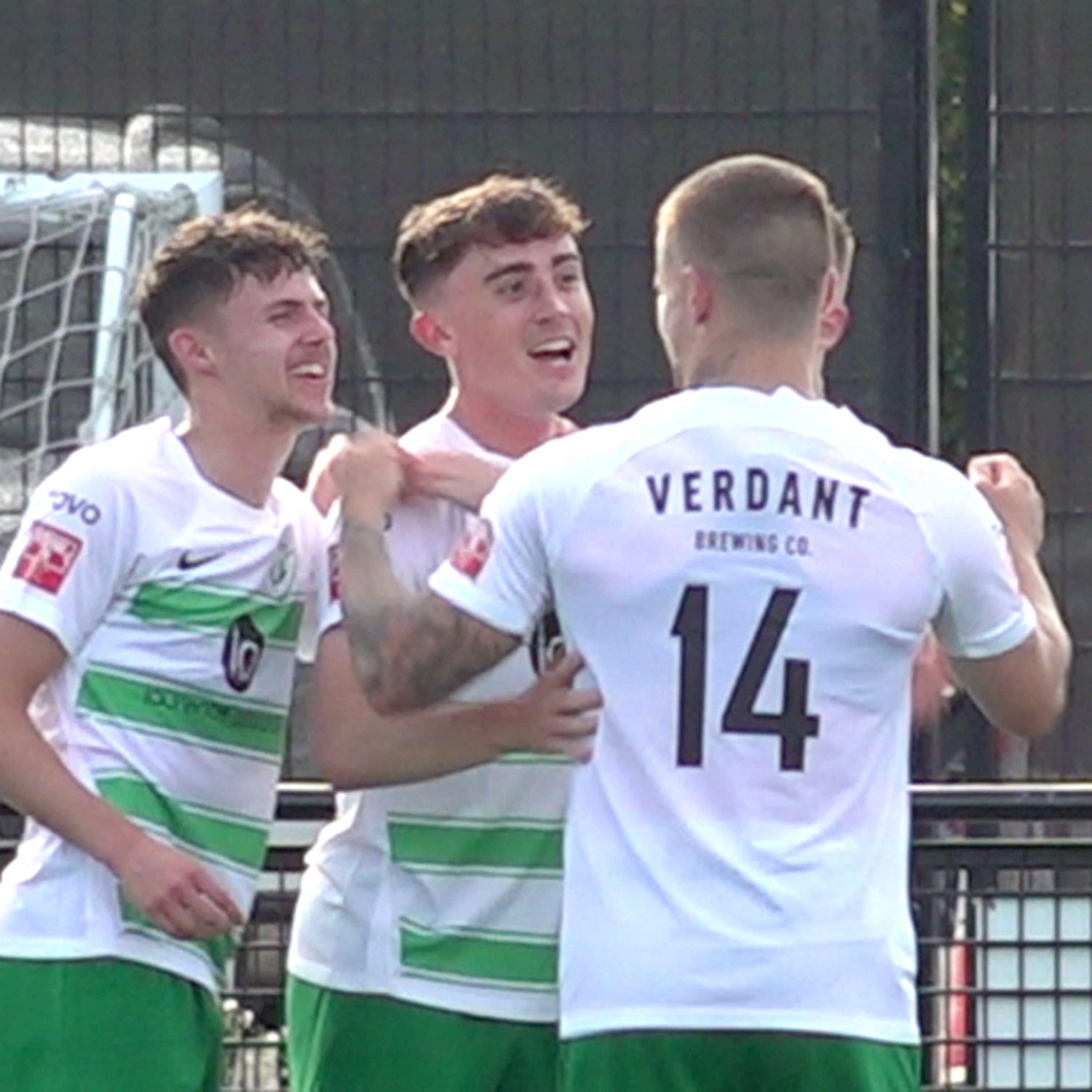 Pablo chats to goalkeeper Lewis Moyle ahead of the FA trophy victory over Melbourne. Post Macht reaction is from Andrew Elcock and Jake Ash