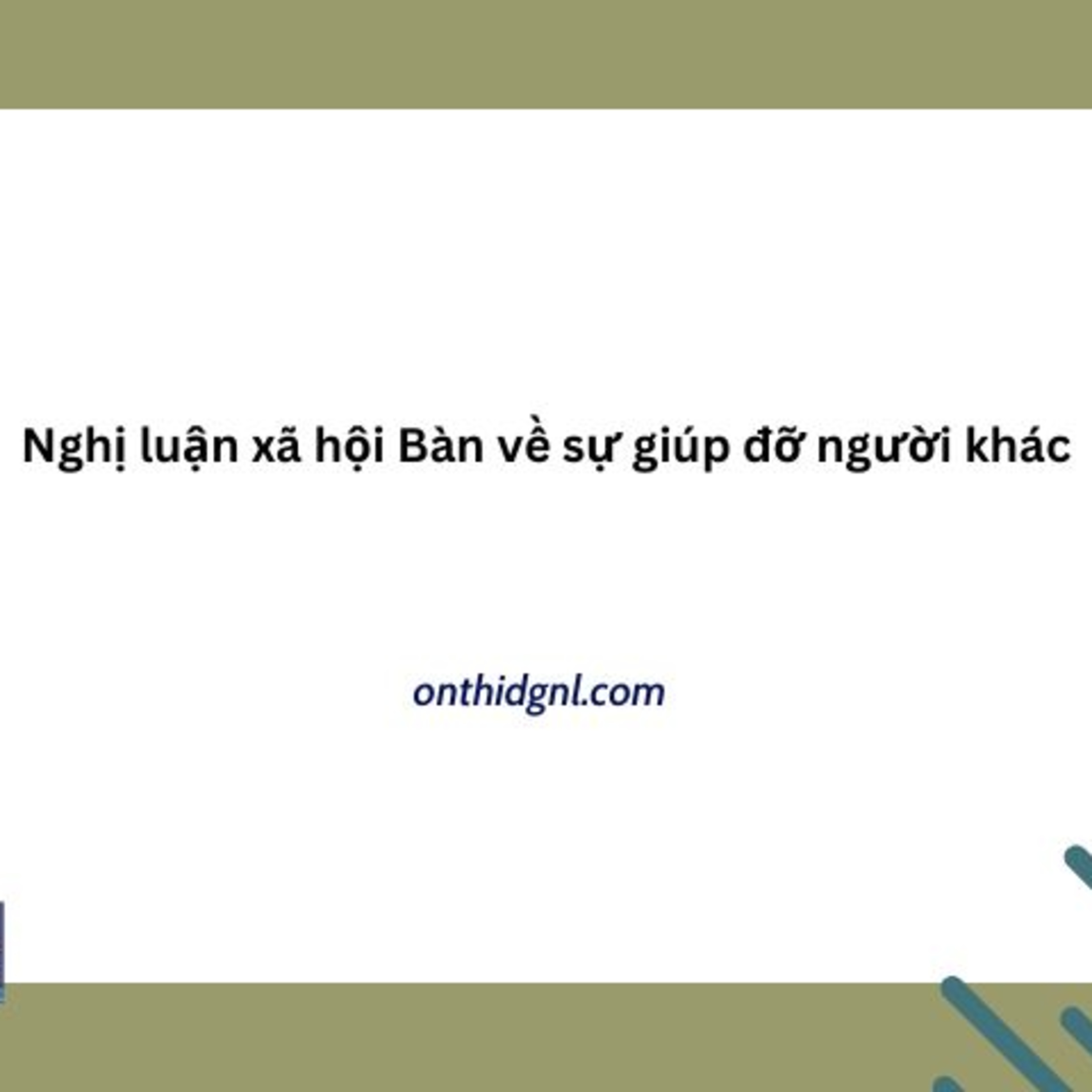 Cùng tham khảo nội dung Nghị luận xã hội Bàn về sự giúp đỡ người khác được Onthidgnl chia sẻ sau đây. Các em tham khảo bài văn mẫu dưới đây để có kỹ năng làm tốt bài văn nghị luận xã hội nhé.
