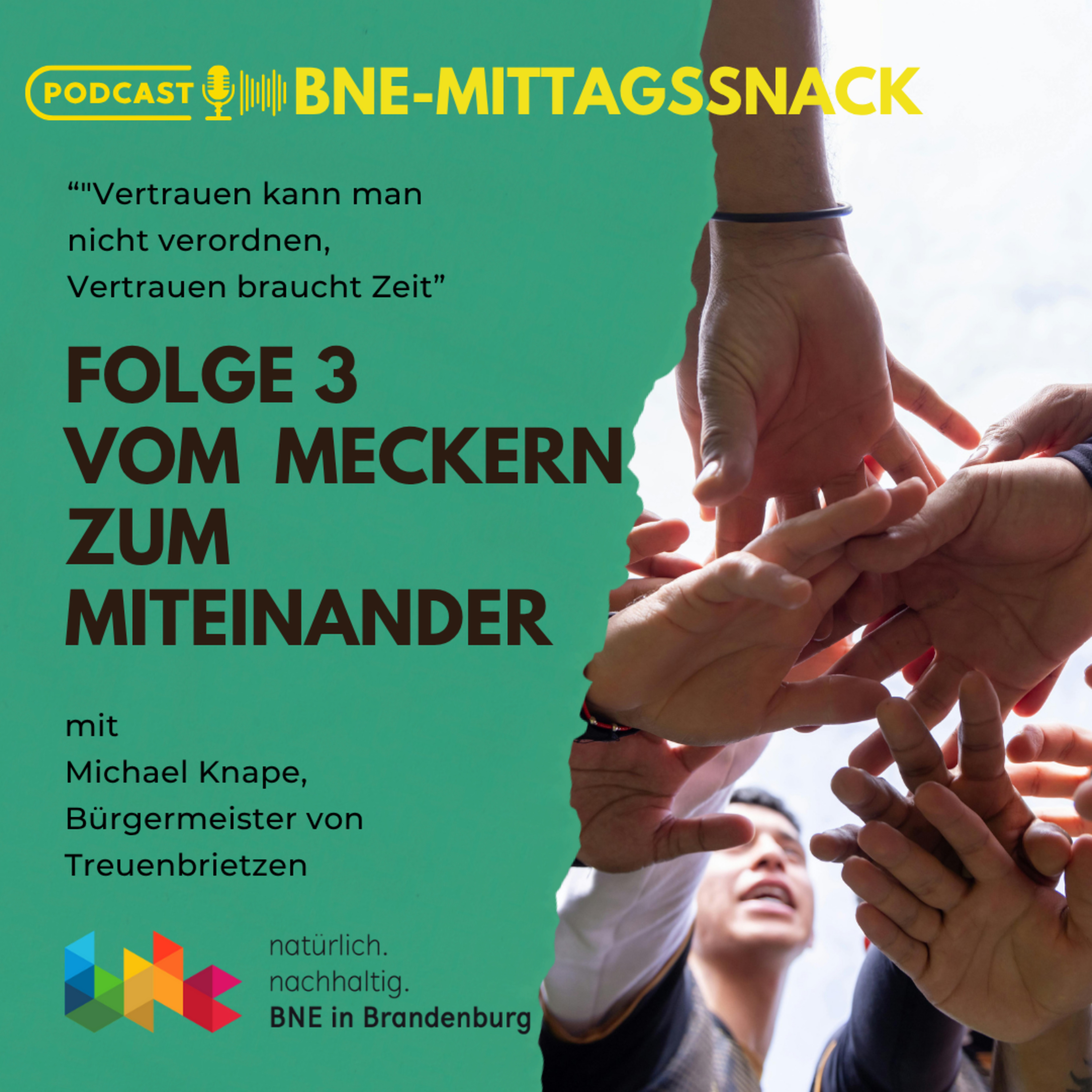 Wie entsteht echtes Miteinander – gerade in der Kommunalpolitik? In dieser Folge des BNE‑Mittagssnacks sprechen wir mit Michael Knape, Bürgermeister von Treuenbrietzen, über den Wert von Zusammenarbeit, Konfliktbewältigung und Vertrauen in politischen Prozessen. Sein Kerngedanke: „Vertrauen kann man nicht verordnen. Vertrauen braucht Zeit.“