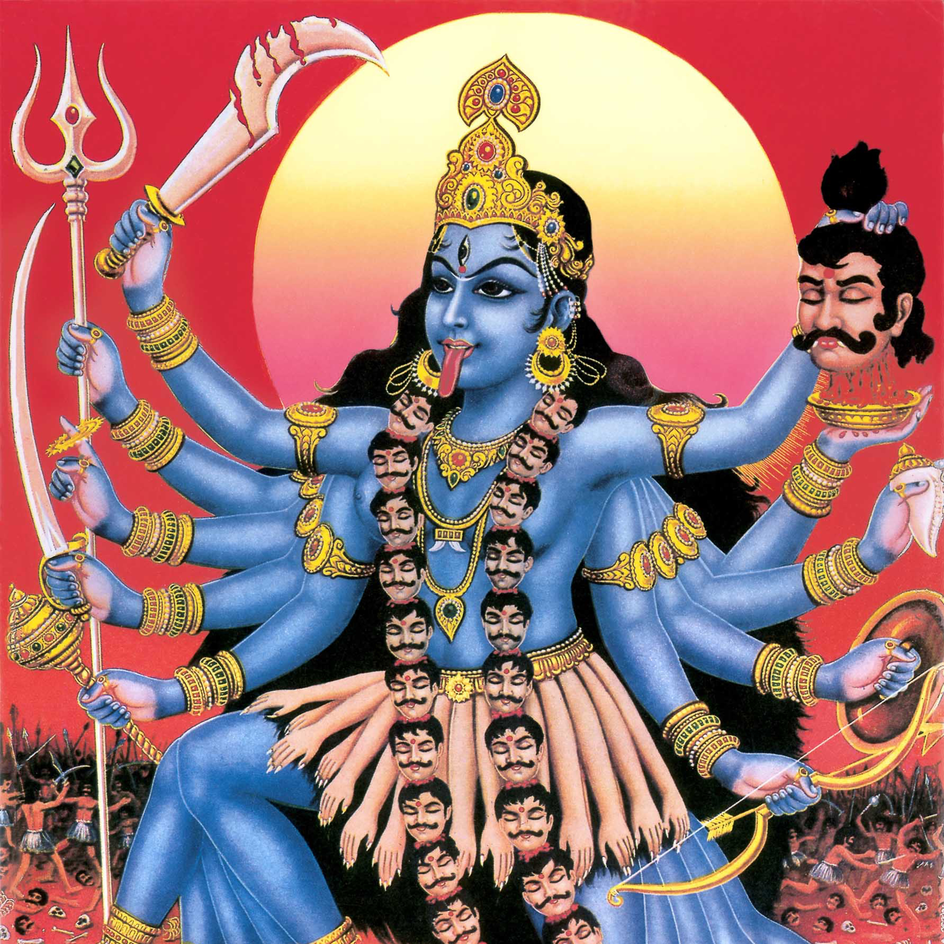 Kali is the Goddess of Destruction in the Hindu religion and is one of the most popular goddesses throughout India. Kali is known for destroying ignorance, and helps those who strive for knowledge of the Divine. Her name translates from Sanskrit to "she who is black" or "she who is death".