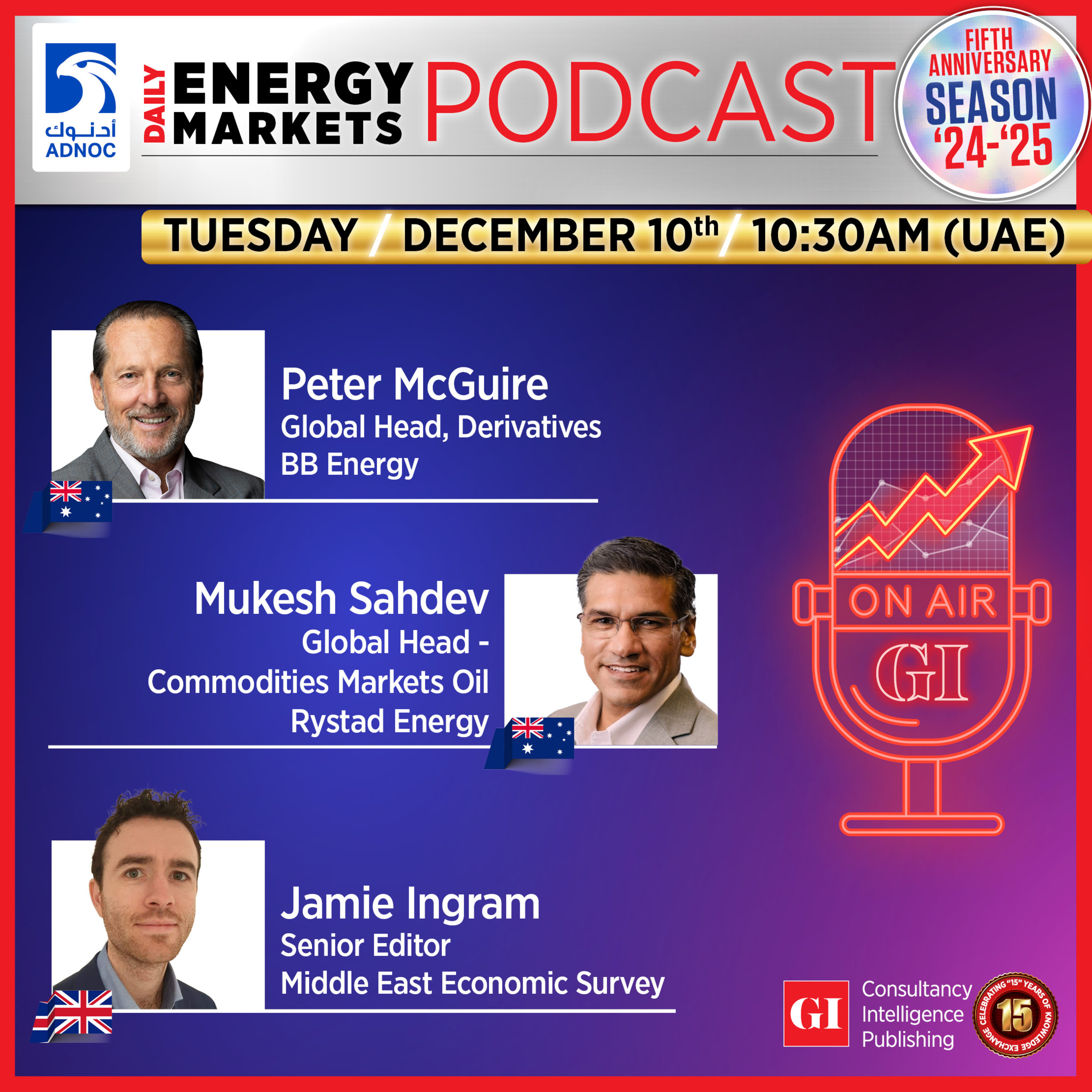 The Daily Energy Markets Podcast went deeper into analyzing OPEC+’s recent decision – are they still in the driver’s seat in the current market? Listen in to hear expert views from Mukesh Sahdev, Global Head - Commodities Markets Oil, Rystad Energy; Peter McGuire, CEO, XM Australia; and Jamie Ingram, Senior Editor, Middle East Economic Survey. The panel also dig into China’s new stimulus campaign. China's top Communist Party officials have announced a shift in their monetary policy stance to "vigorously" boost consumption - will it drive up China's oil demand in 2025: Yes or No? Vote here: https://x.com/gulf_intel/status/1866376994876964956
