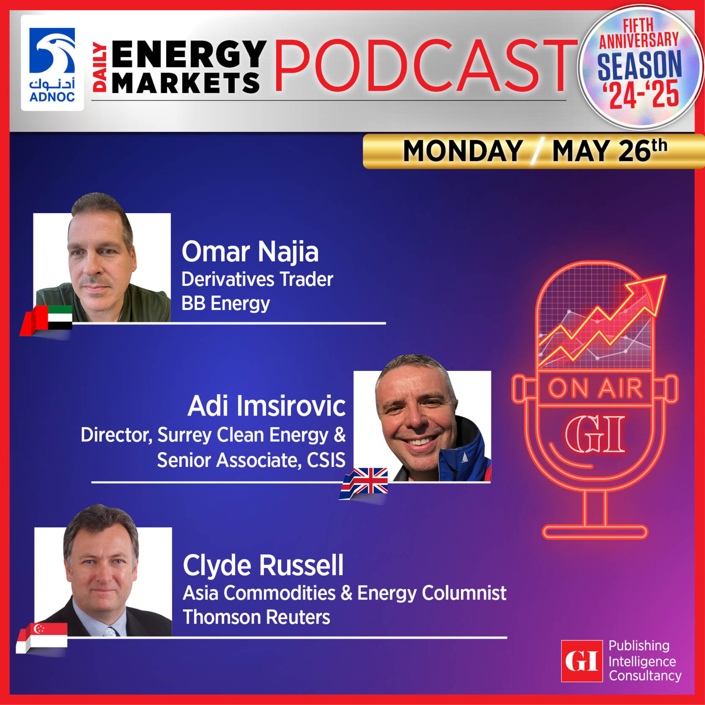 Tune in for fresh insights on the outlook for China’s oil demand and likely supply hike from OPEC+ in its next meeting. Hear from three of the top class analysts in the industry Omar Najia, Derivatives Trader, BB Energy; Adi Imsirovic, Director, Surrey Clean Energy & Senior Associate, CSIS; Clyde Russell, Asia Commodities & Energy Columnist; Thomson Reuters. Oil markets have priced in that OPEC+ will continue with accelerated oil supply increase strategy when it meets June 1st: Agree or Disagree? VOTE here: https://x.com/gulf_intel/status/1926896913632141720 OR here: https://www.linkedin.com/feed/update/urn:li:activity:7332662677862875136