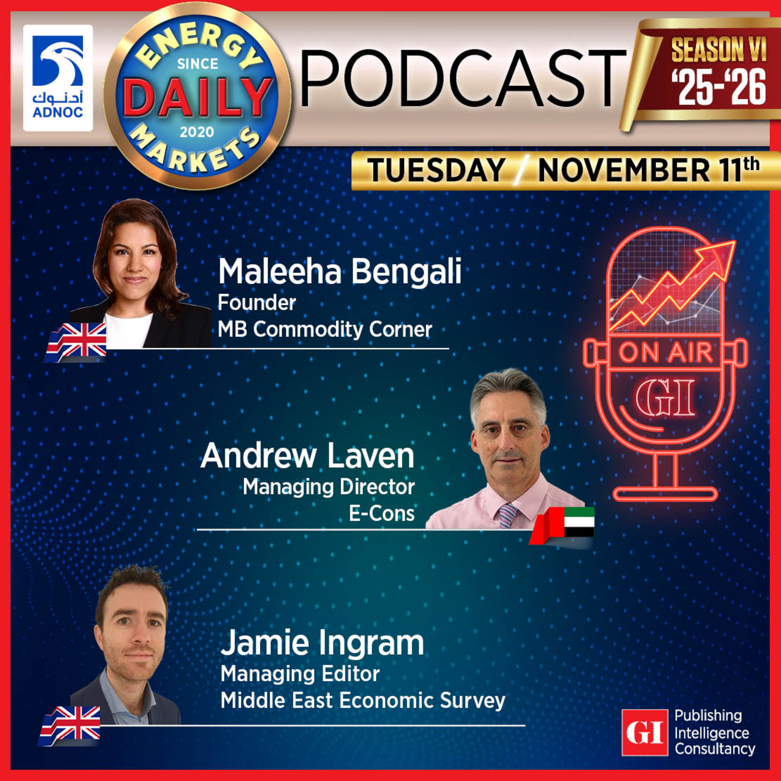 Oil markets remain caught between oversupply and policy uncertainty. Maleeha Bengali (MB Commodity Corner), Andrew Laven (E-Cons), and Jamie Ingram (MEES) discuss whether Brent’s $65 range is a pause or a warning, as weak U.S. data, cautious Chinese demand, and OPEC+ restraint shape sentiment. The panel also weighs the Fed’s next move, Trump’s economic playbook, and the outlook for gold and risk assets. Listen in for clear-eyed market commentary as the year winds down.