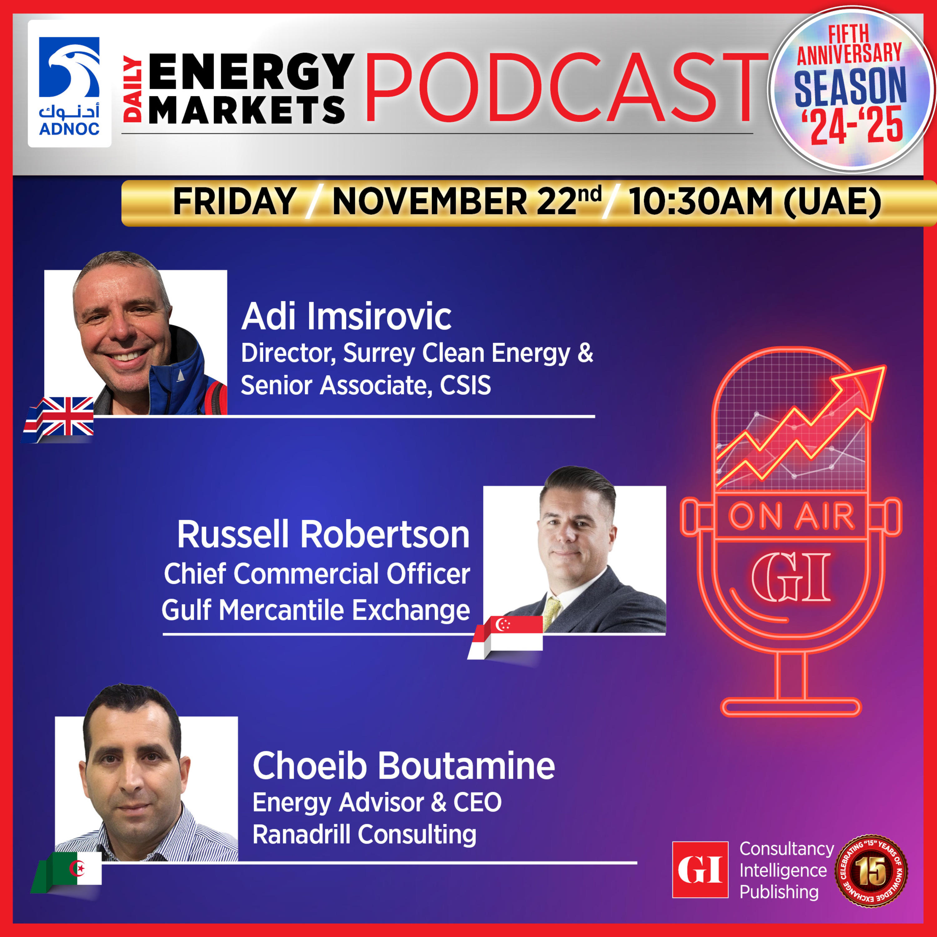 How does the current oil price reflect the geopolitical risk to energy supply infrastructure: Seems about right; Underprices Risk; Overprices Risk; OR Significantly Underprices Risk? The Daily Energy Markets Podcast wrapped up the week with an insightful conversation joined by Adi Imsirovic, Director, Surrey Clean Energy & Senior Associate, CSIS; Russell Robertson, Chief Commercial Officer, Gulf Mercantile Exchange; and Choeib Boutamine, Energy Advisor & CEO, Ranadrill Consulting. Pencil in your views here: https://x.com/gulf_intel/status/1859853813060075759