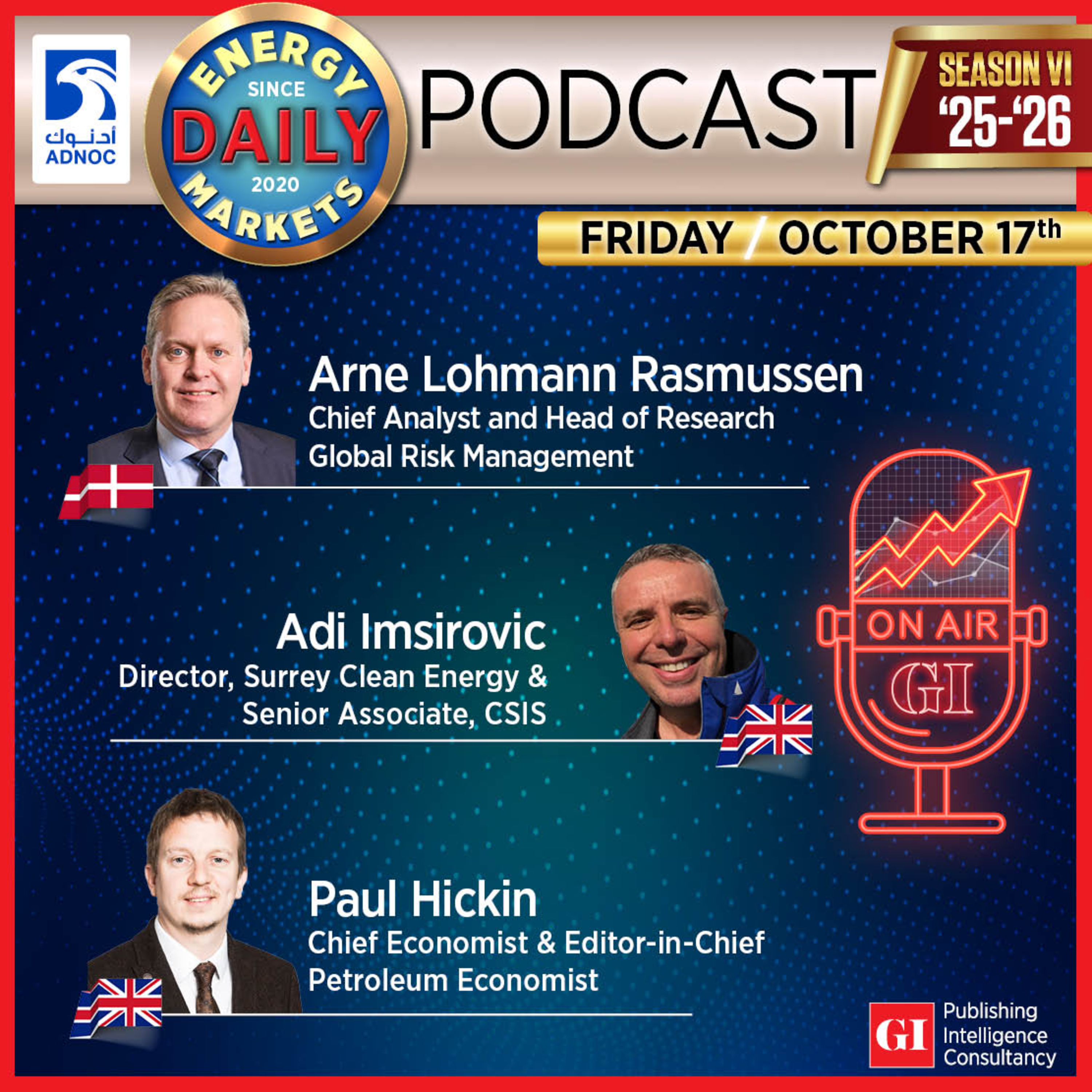 The Daily Energy Markets Podcast capped the conversation this week, featuring Adi Imsirovic (Surrey Clean Energy), Paul Hickin (Petroleum Economist), and Arne Rasmussen (Global Risk Management). The panel unpacked oil’s slide toward $60 Brent, driven by renewed Trump-Putin peace talk speculation, refinery disruptions in Russia, and weak global demand. They warned of potential contango, US shale stress, and macro-financial volatility ahead.
