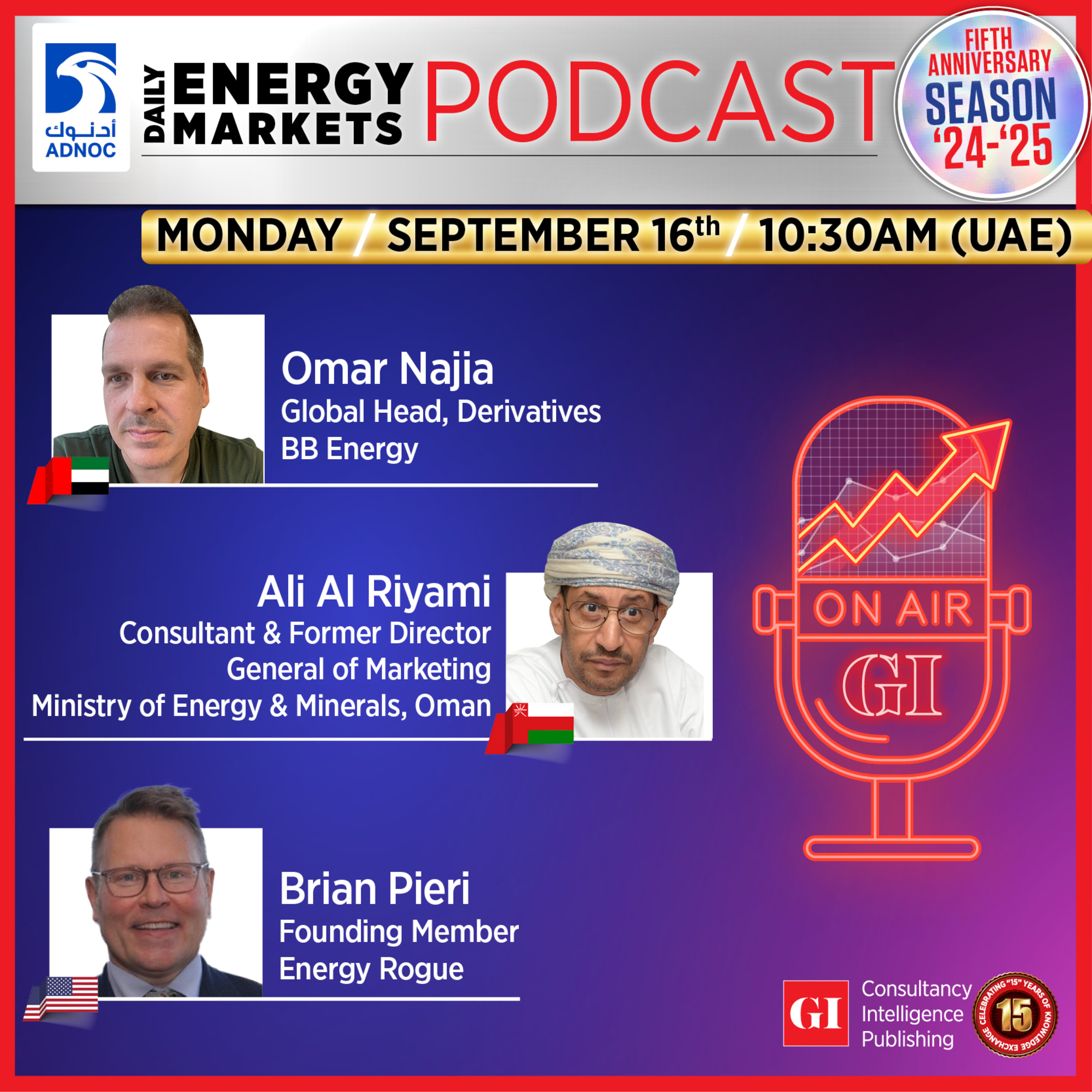 What size of FED rate cut this week would be more bullish for oil prices - 25 basis points; 50 basis points; or NO impact on oil prices? Listen in for this week’s outlook from Omar Najia, Global Head, Derivatives, BB Energy; Brian Pieri, Founding Member, Energy Rogue; and Ali Al Riyami, Consultant & Former Director General of Marketing, Ministry of Energy & Minerals, Oman. Share your views here: https://x.com/gulf_intel/status/1835573940594336146