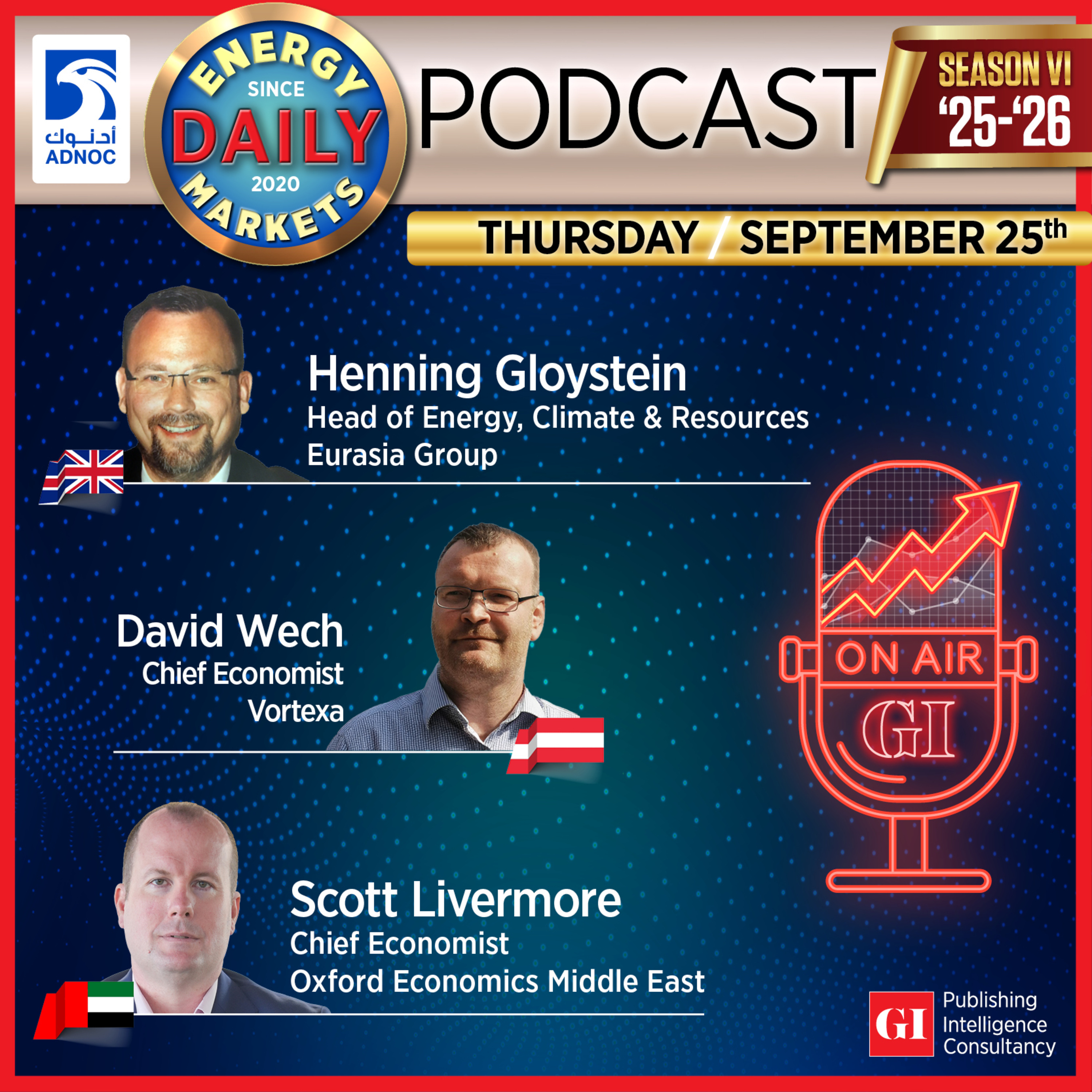 Today’s Daily Energy Markets podcast featured Amina Bakr (Kpler), Ahmed Mehdi (Renaissance Energy Advisors/Oxford Institute), and Max Torres (PetroTal). Panelists discussed Brent’s rally toward $70, geopolitical risks, thinning OPEC+ spare capacity, and uneven inventory trends. They shared insights on OPEC+ cohesion, quota limits, and spare capacity dynamics, while also examining U.S. shale’s slowdown, Latin American supply, Iraq’s constraints, and Trump’s shifting Russia stance.