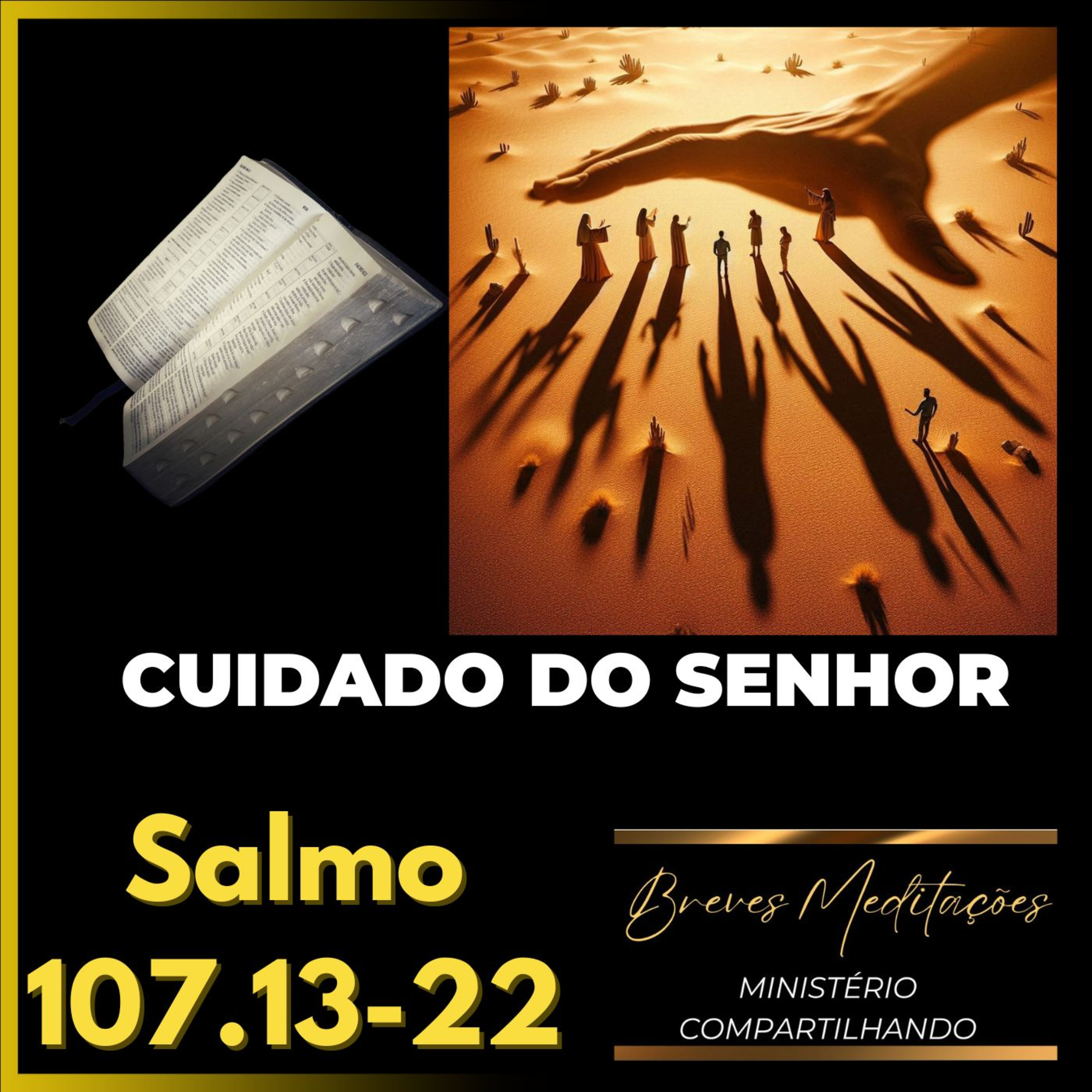 Cuidado do Senhor - Salmo 107.13-22Quando o povo andou pelo deserto, tiveram alimento e água, sem contar com o cuidado no lugar (viveram em certa tranquilidade, pois não havia ataques externos que não contassem com o cuidado do Senhor, que era constante, mesmo num ambiente complicado e hostil) e com o cuidado com o vestuário. Quando o povo chegou na Terra Prometida, tomaram posse da terra. Quando foram para o exílio, ainda assim contaram com a misericórdia do Senhor, que em vez de punir com a morte, permitiu um tempo de acerto para que voltassem a obedecer a Sua vontade. Voltaram para casa, refizeram tudo e contaram com o cuidado do Senhor. E nós temos, em Jesus, a libertação do pecado! Quem providenciou isso para nós foi o Senhor, amém?