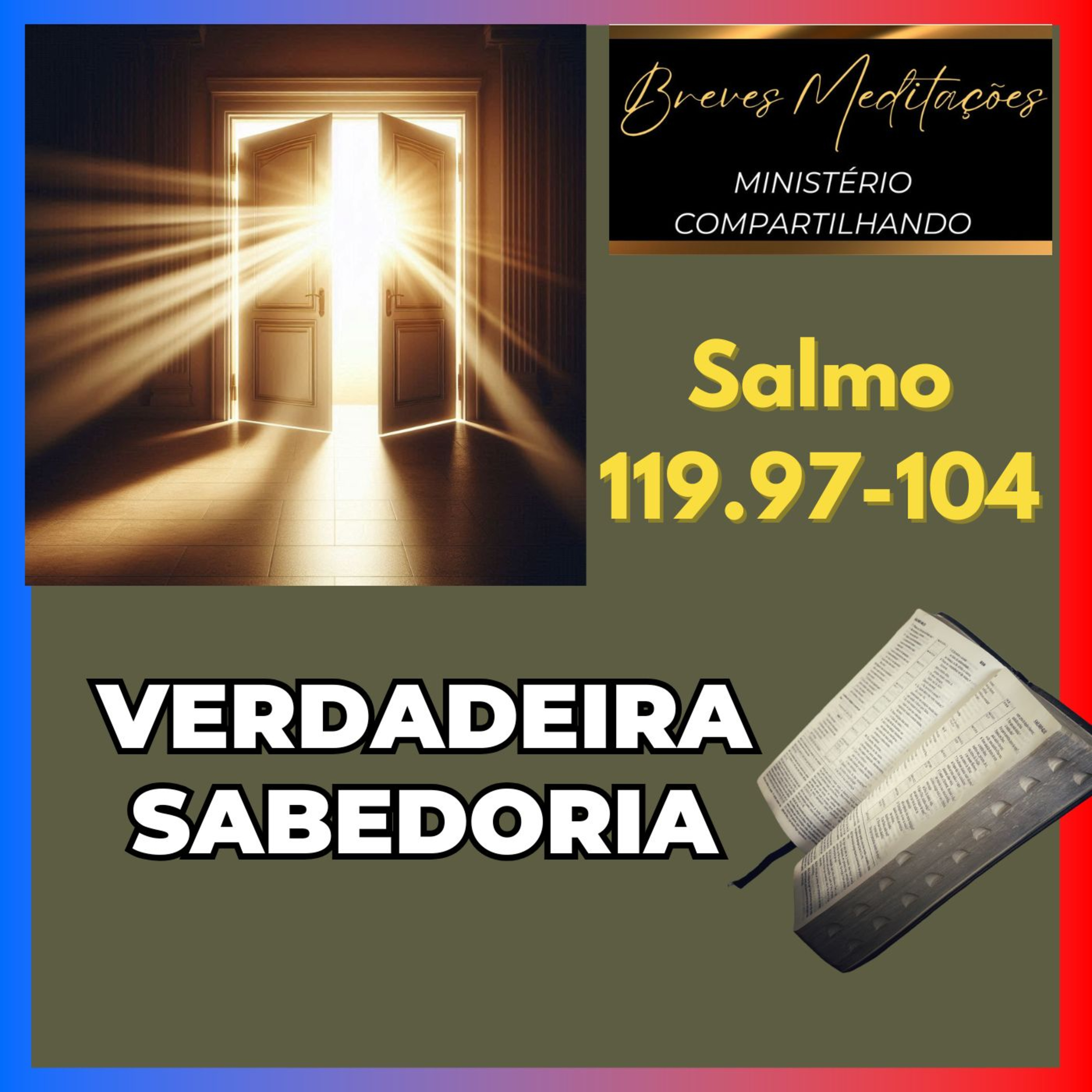 Verdadeira Sabedoria - Salmo 119.97-104Vemos neste texto uma belíssima confirmação que vale a pena amar a lei de Deus, a Sua Palavra, e meditar em cada ponto. Ao fazermos isso, ao meditarmos na Palavra do Senhor, e mais que isso, ao observarmos os Seus preceitos, passamos a viver de acordo com a verdadeira sabedoria. As atitudes são reflexo e consequência dessa vida de busca real e sincera das coisas do Senhor! Não é algo imposto moral ou socialmente, mas algo que vem de uma vida no altar! Você busca conhecimento e coloca em pratica no seu dia a dia essa revelação do Senhor?