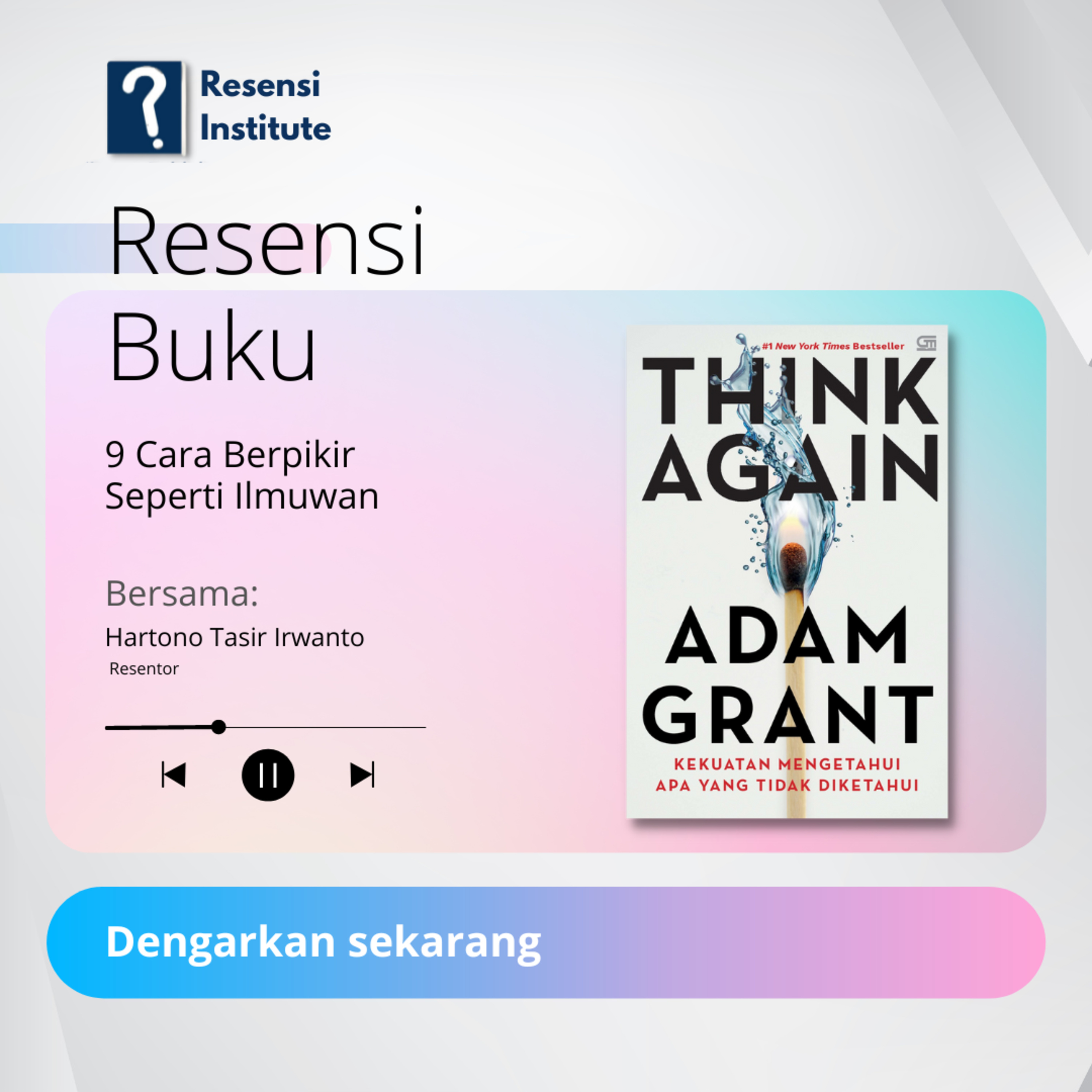 Adam Grant dalam bukunya yang berjudul Think Again mengutip kawannya, Phil Tetlock, yang membagi 4 tipe pola pikir; Jaksa yang merupakan penuntut terhadap orang yang kita anggap salah, pengkhutbah yang berceramah tentang hal yang menurut kita benar, politisi yang sibuk mencari dukungan atau pengikut, dan ilmuwan yang senantiasa berpikir ulang terhadap kebenaran dan kesalahan diri sendiri, orang lain, bahkan kelompok. Mengapa berpikir seperti ilmuwan adalah yang paling utama untuk dipraktikkan? Dan bagaimanakah cara berpikir seperti ilmuwan?