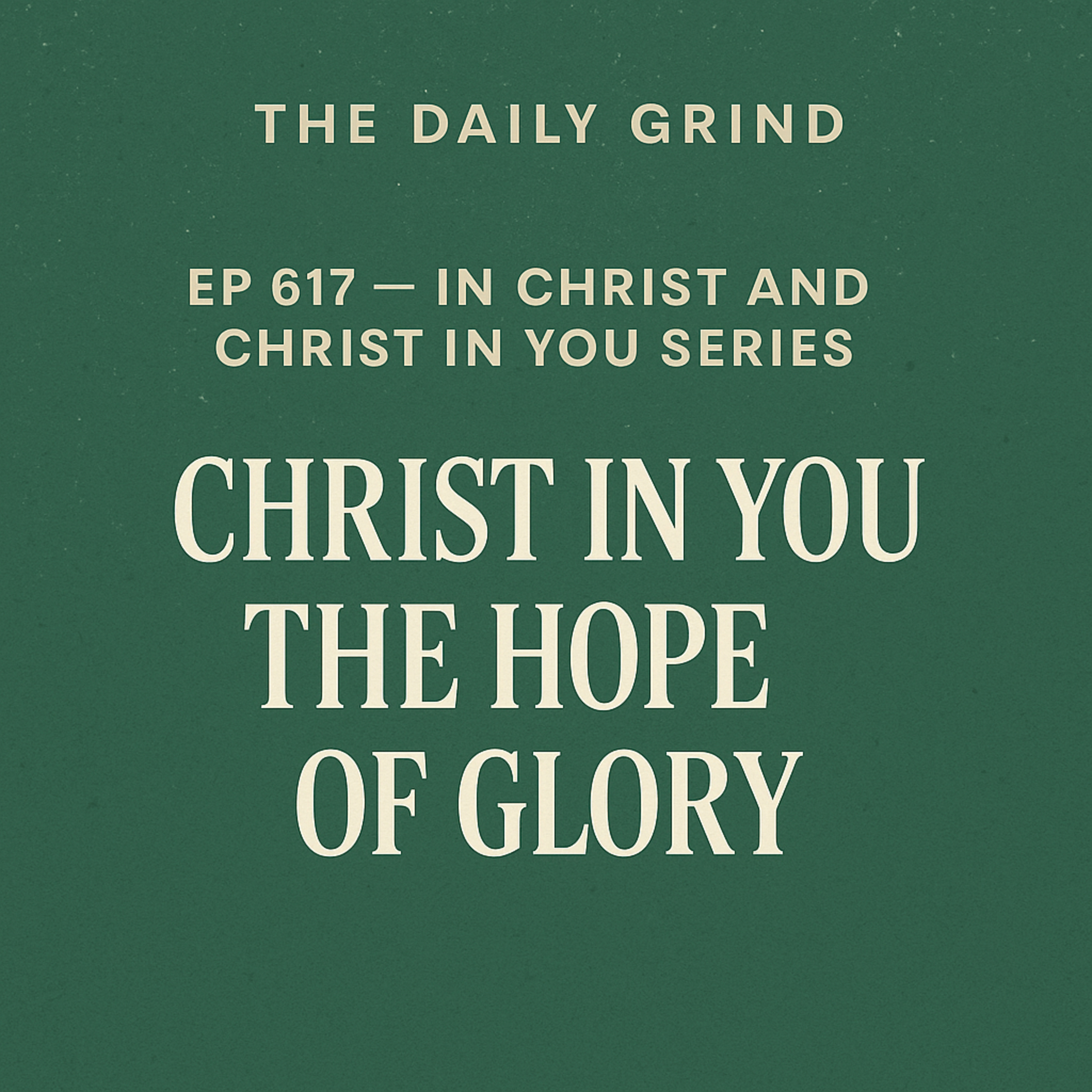 Tuesday, October 14th: In Episode 617 of The Daily Grind, John Spencer explores the profound truth of Christ in you, the hope of glory (Colossians 1:27). He explains how God’s presence moved from temples made by hands to living within His people through the Holy Spirit. Drawing from historical and cultural context, John shows how Paul’s language countered the mystery religions of the ancient world — revealing that the true mystery is already known: the indwelling Christ. He uses the Y’all Version to emphasize the communal nature of this reality, reminding listeners that God’s glory now dwells in y’all together. Through vivid imagery, John compares the believer to a glove animated by the life of Christ. He encourages believers to live from union, not for approval, cultivating awareness, surrender, community, and obedience. The episode closes with practical reflection and the call to embrace the daily miracle of divine indwelling.