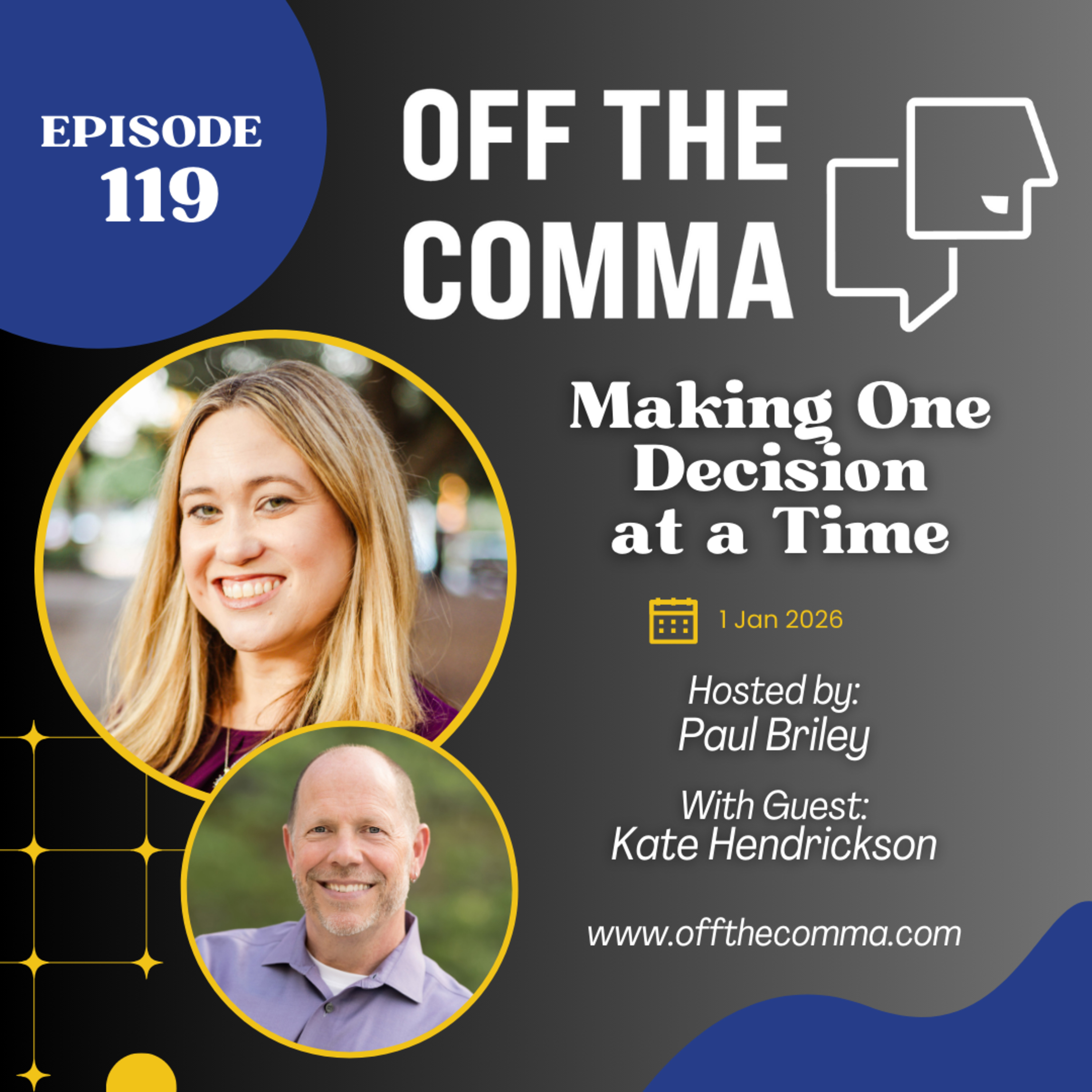 While we grow this podcast, you can learn more about me at www.offthecomma.com. All of my social media links, organizations I support and other ways to reach me can be found on my website: https://offthecomma.com/mylinks/