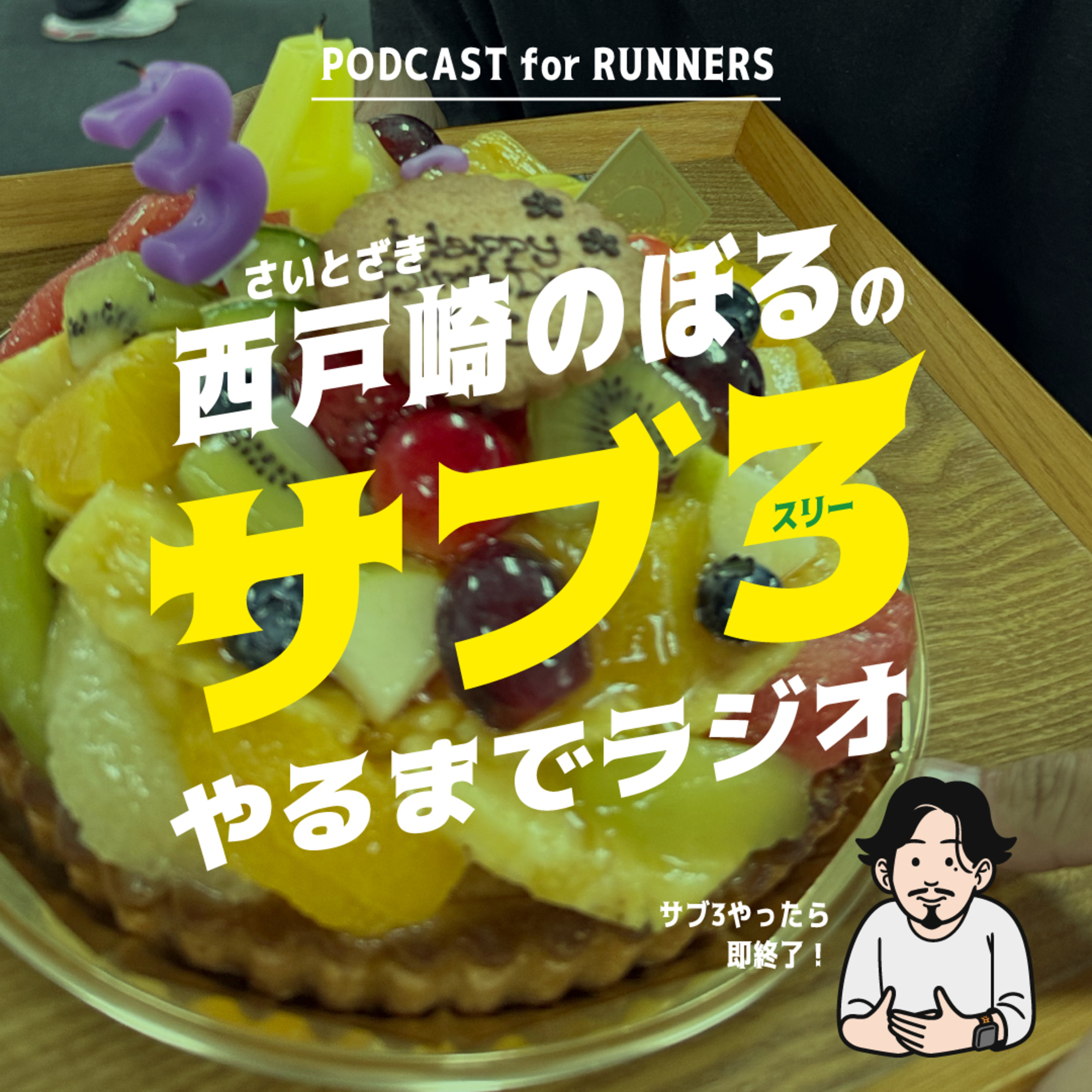 福岡の市民ランナー西戸崎のぼるが、ただただ憧れのサブ3をやるまで毎週続ける“願掛け的ひとり語りポッドキャスト”それが「西戸崎のぼるのサブ3やるまでラジオ」。その名の通り、サブ3をやったら即終了!の、終わりに向かうラジオです。
