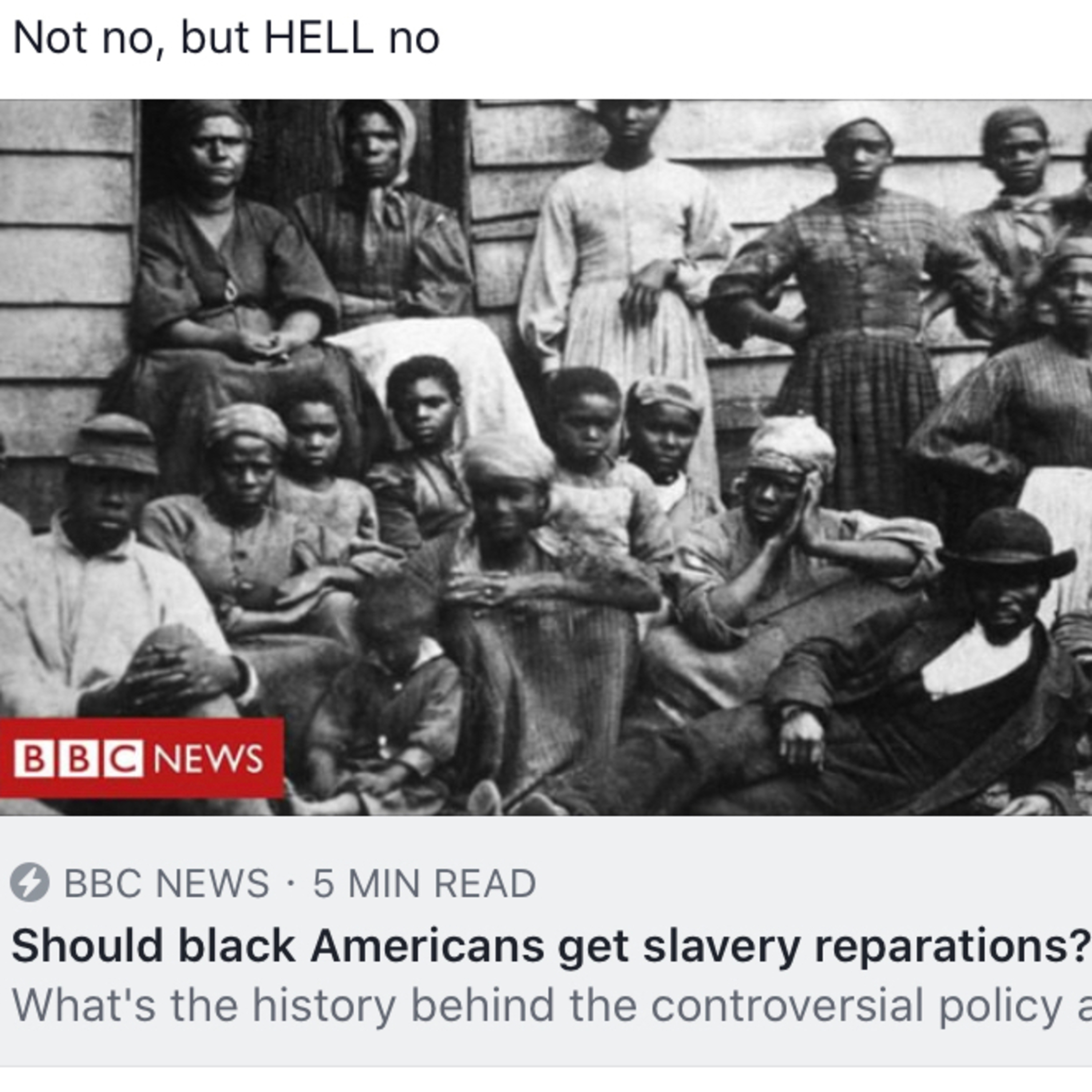 As i sad on my Facebook. Not no, but HELL no blacks don’t deserve reparations. To be honest its extremely disrespectful to the slaves that did break their back during the peculiar institution. Its disrespectful to you black man saying the you cannot make it society because you’re being held back. The notion that slavery is the reason why black community is at the bottom of the totem pole is a sorry ass excuse for what the real issues is. Another reason why blacks don’t deserve reparations because they simply weren’t enslaved.