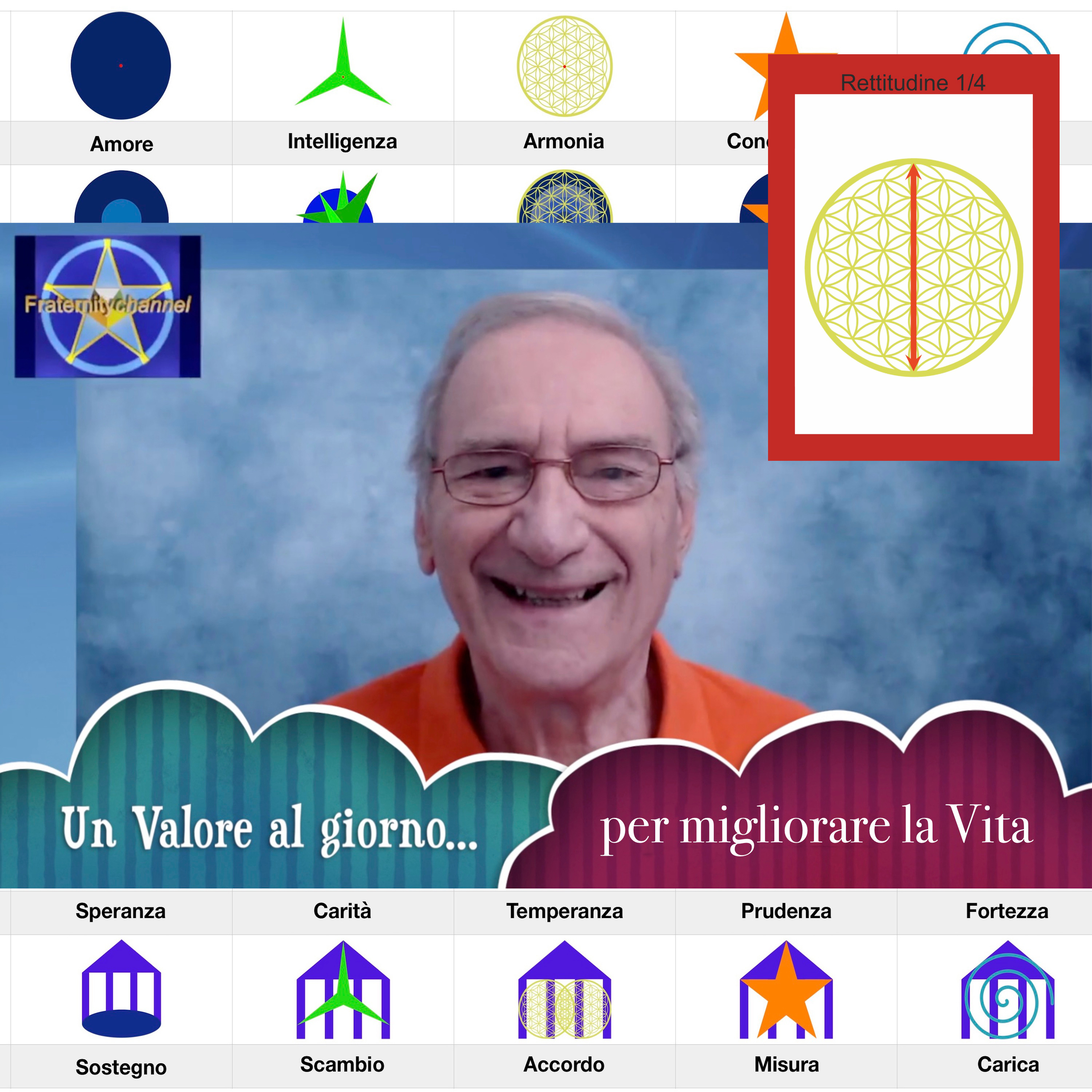 Il valore della Rettitudine nasce dalla combinazione del valore di Volontà che traccia una linea retta tra gli estremi del Fiore della vita simbolo dell’Armonia. Il significato del valore è quello di unire il Cielo alla terra in una comunicazione a due sensi. Tale comunicazione allinea l’essere umano al Proposito superiore di cui diventa fedele esecutore; per cui, chi è retto nelle intenzioni, nei pensieri e nelle azioni, si comporta secondo il Bene comune. La Rettitudine è la linea di minor resistenza che unisce il sopra al sotto. https://www.facebook.com/Cartevalori
