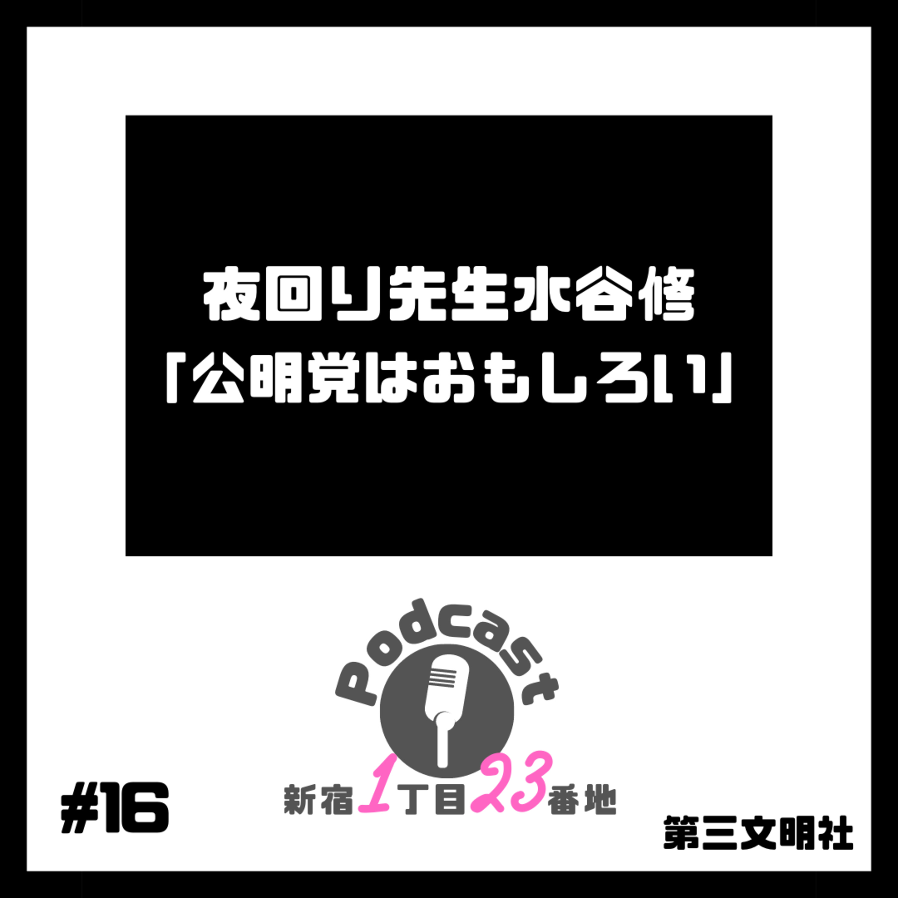 第三文明社がお送りするPodcast「新宿1丁目23番地」。第16回は、夜回り先生水谷修さん著の「公明党はおもしろい」を紹介します。
